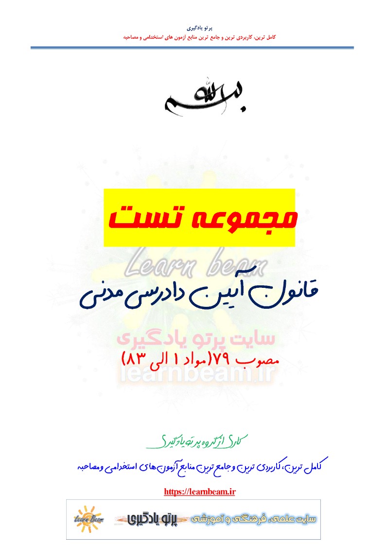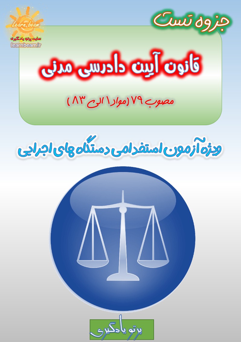 تست آیین دادرسی مدنی مصوب ٧٩ (مواد ١ الی ٨٣) سوالات تستی قانون آیین دادرسی مدنی شامل 150 تست در 59 صفحه با پاسخ تشریحی در قالب فایل pdf می باشد. مجموعه سوالات تستی قانون آیین دادرسی مدنی قابل چاپ با کیفیت عالی جهت انسجام ذهنی، خودآزمایی و مطالعه سریع داوطلبین شرکت کننده در آزمون های استخدامی و در دوازدهمین امتحان مشترک فراگیر دستگاه های اجرایی کشور در سال 1403 مطابق با دفترچه راهنمای ثبت نام آزمون و اصلاحیه نهایی می باشد.