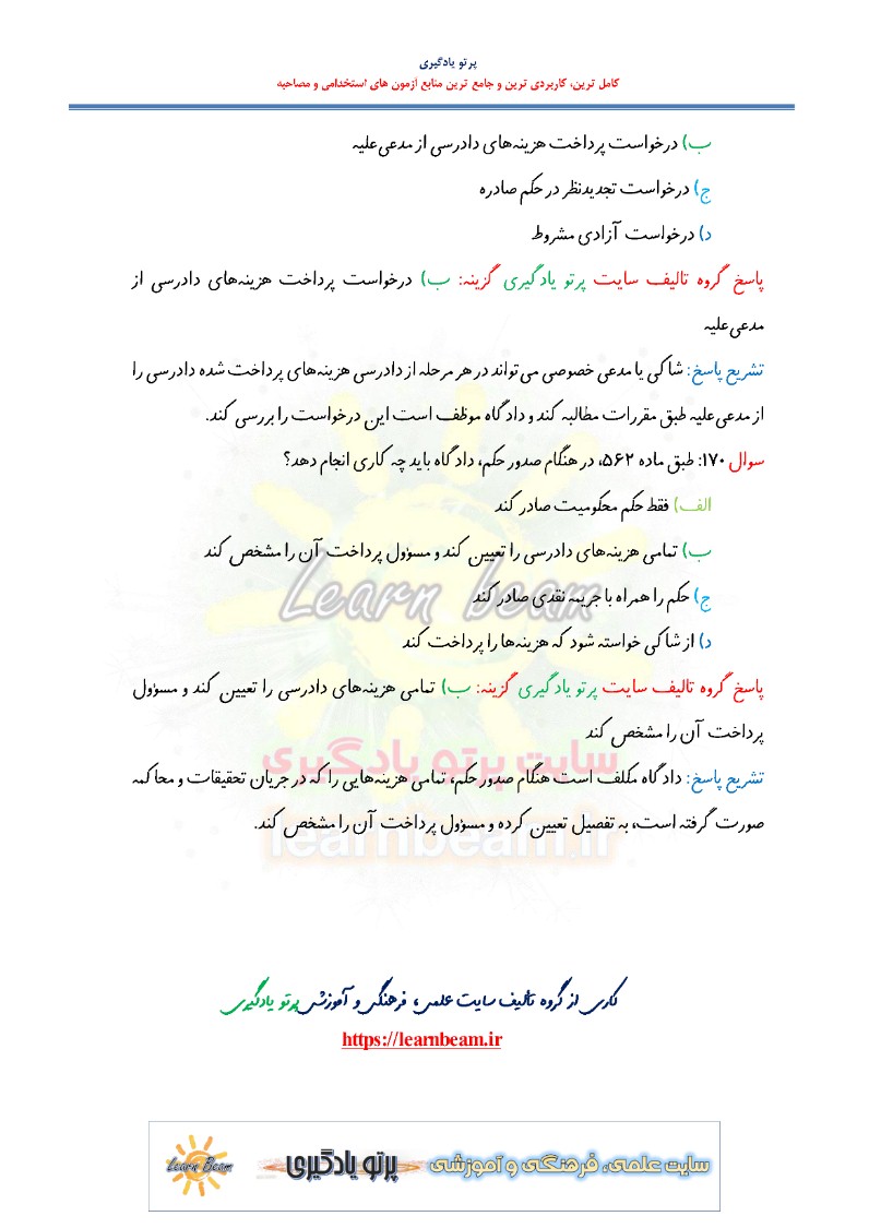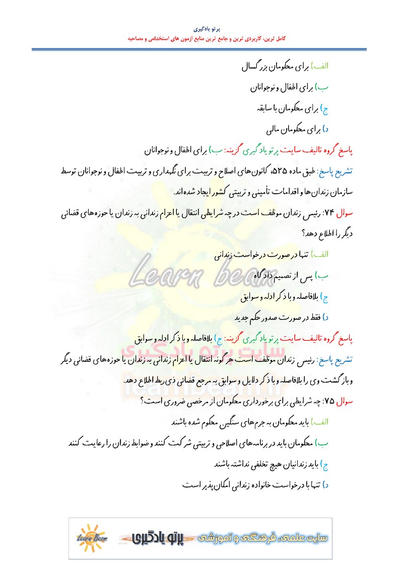 سوالات تستی آیین دادرسی کیفری شامل 170 سوال تستی در 74 صفحه با پاسخ تشریحی در قالب فایل pdf قابل چاپ با کیفیت عالی جهت انسجام ذهنی، خودآزمایی و مطالعه سریع داوطلبین شرکت کننده در آزمون های استخدامی و دوازدهمین امتحان مشترک فراگیر دستگاه های اجرایی کشور مطابق با دفترچه ثبت نام و مطابق با سرفصل های اعلام شده در دفترچه راهنمای ثبت نام می باشد.
