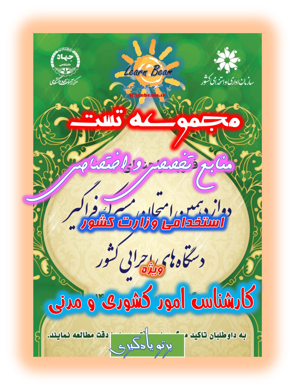 تست منابع تخصصی و اختصاصی کارشناس امور کشوری و مدنی شامل 1102 سوال تستی در 318 صفحه در قالب فایل pdf استخدامی وزارت کشور در سال 1403. وزارت کشور در سال 1403 مطابق با منابع دفترچه استخدامی دوازدهمین امتحان مشترک فراگیر دستگاههای اجرایی به منظور تأمین نیروی مورد نیاز و خدمترسانی شایسته به هموطنان، برای تصدی عنوان شغلی کارشناس امور کشوری و مدنی افراد واجد شرایط را از طریق برگزاری آزمون کتبی در حیطههای عمومی و تخصصی و اختصاصی، ارزیابی تکمیلی و طی مراحل گزینش بهصورت پیمانی استخدام مینماید. داوطلبان محترم می توانند با تهیه پک تست منابع تخصصی و اختصاصی استخدامی کارشناس امور کشوری و مدنی برای آزمون استخدامی این وزارتخانه که روز جمعه مورخ 23 آذر ماه سال ۱۴۰3 برگزار خواهد شد خود را آماده و توانمند نمایند. تلاش گروه پرتو یادگیری با تهیه پک کامل سوالات تستی این آزمون استخدامی، راحتی و دستیابی عادلانه همه داوطلبین این آزمون استخدامی به منابع کامل می باشد. ضمن آرزوی موفقیت برای یکایک عزیزان در آزمون استخدامی پیش رو.