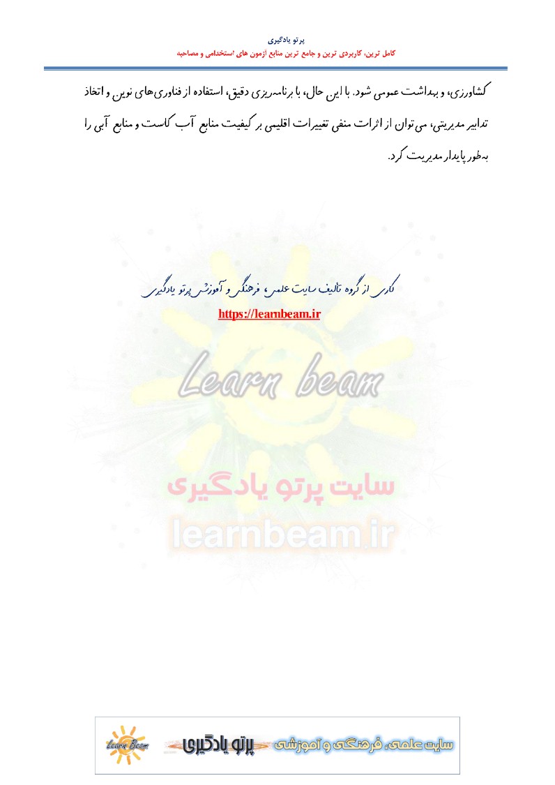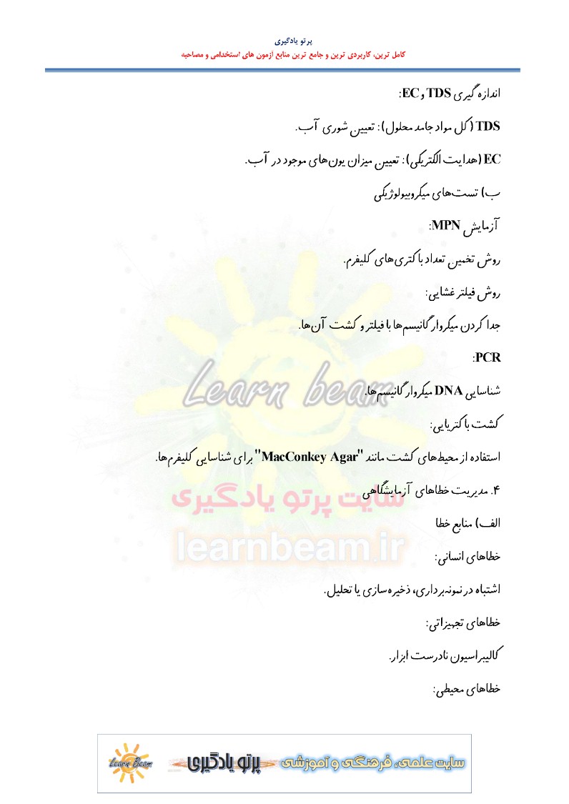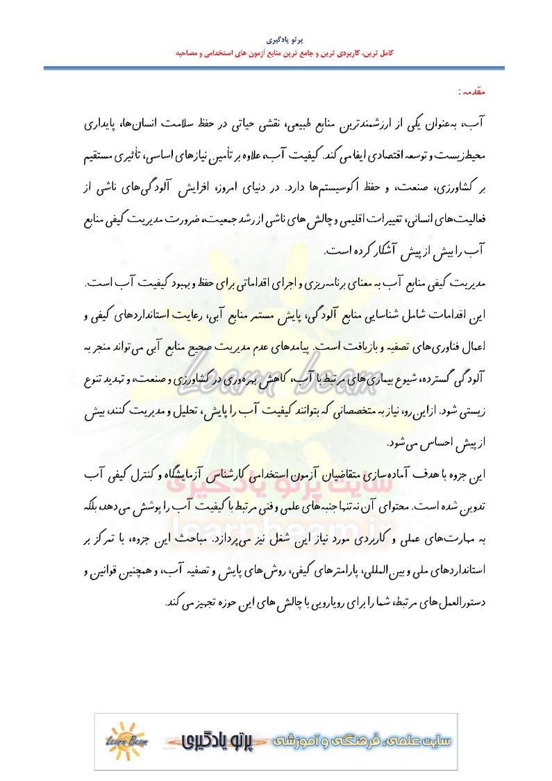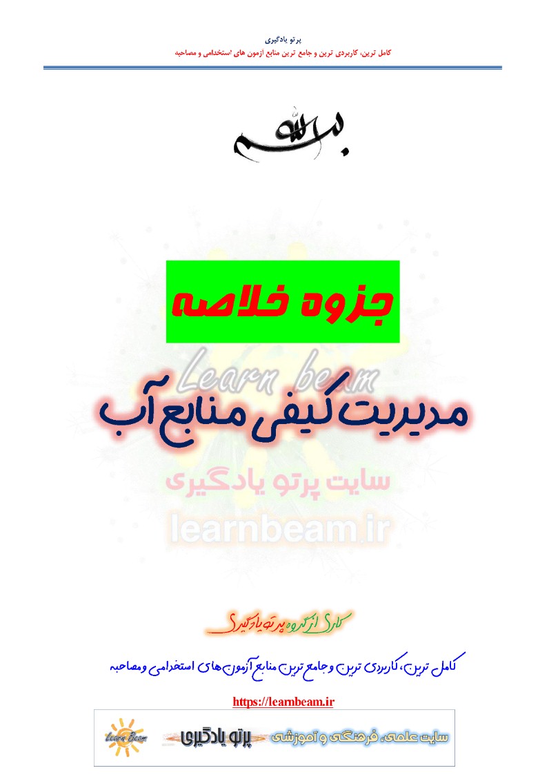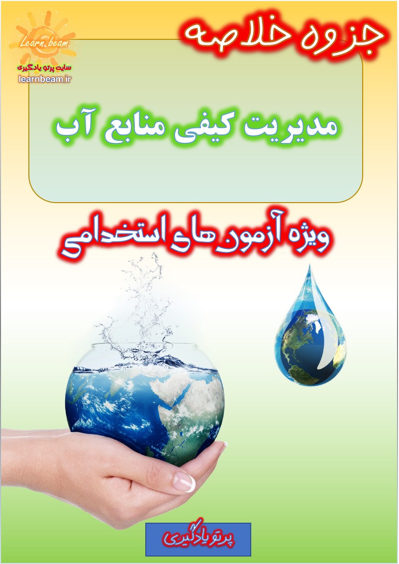 جزوه خلاصه مدیریت کیفی منابع آب در 61 صفحه در قالب فایل pdf قابل چاپ با کیفیت عالی جهت انسجام ذهنی، خودآزمایی و مطالعه سریع داوطلبین شرکت کننده در آزمون های استخدامی و دوازدهمین امتحان مشترک فراگیر دستگاه های اجرایی کشور مطابق با دفترچه ثبت نام و مطابق با سرفصل های اعلام شده در دفترچه راهنمای ثبت نام می باشد.