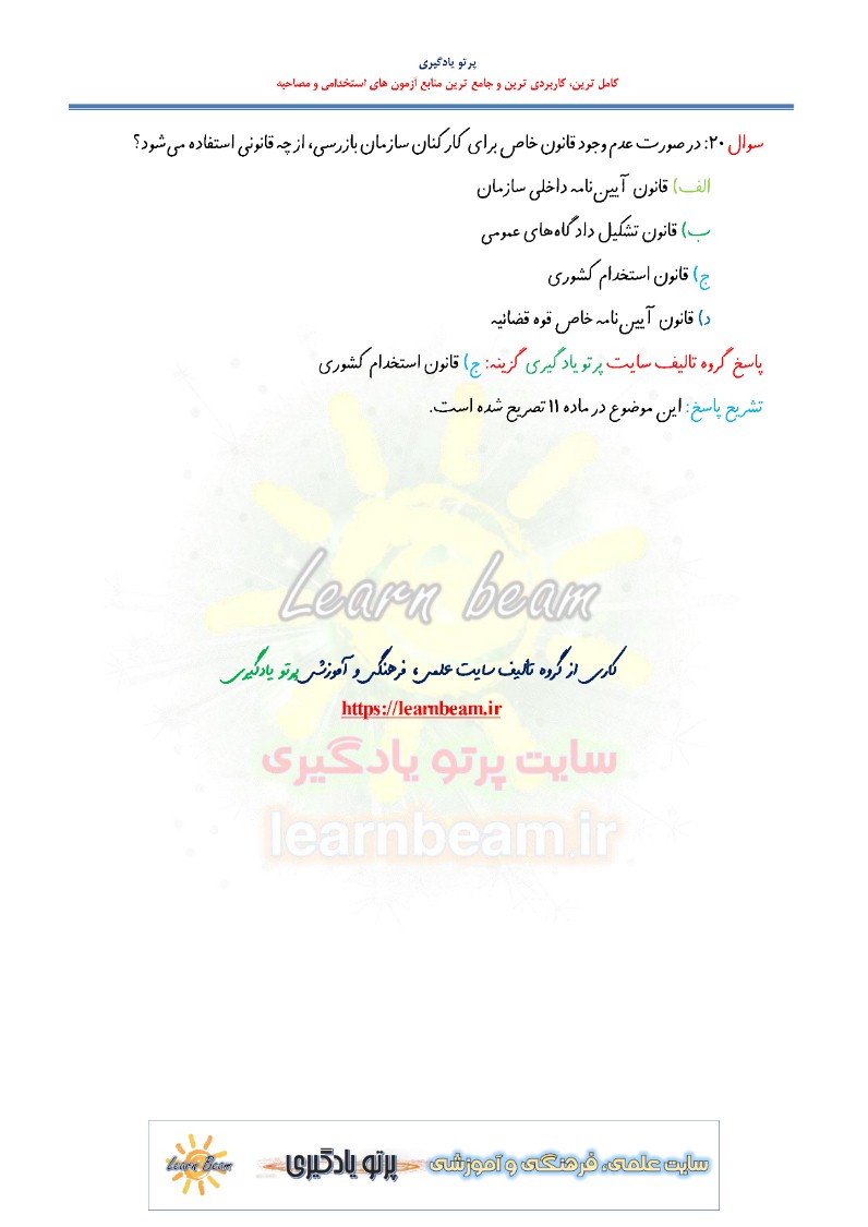 تست قانون راجع به مقررات اداري و استخدامي سازمان بازرسي كل كشور (شامل 20 تست)
