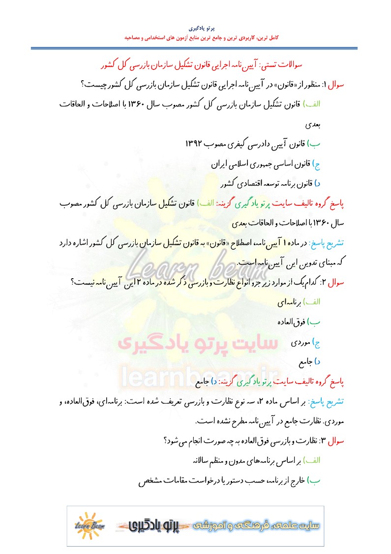 تست قانون تشكيل سازمان بازرسي كل كشور (شامل 49 تست)