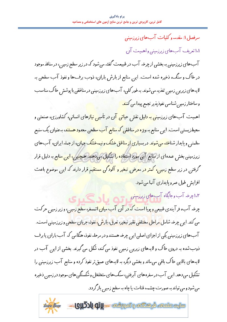 خلاصه مهندسی منابع آبهای زیرزمینی