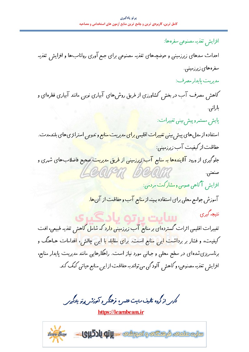 خلاصه مهندسی منابع آبهای زیرزمینی جزوه خلاصه مهندسی منابع آبهای زیرزمینی در 50 صفحه در قالب فایل pdf می باشد. مجموعه خلاصه و نکات کلیدی مهندسی منابع آبهای زیرزمینی قابل چاپ با کیفیت عالی جهت انسجام ذهنی، خودآزمایی و مطالعه سریع داوطلبین شرکت کننده در آزمون های استخدامی و در دوازدهمین امتحان مشترک فراگیر دستگاه های اجرایی کشور در سال 1403 مطابق با دفترچه راهنمای ثبت نام آزمون و اصلاحیه نهایی می باشد. اگر به دنبال راهی سریع و مؤثر برای درک مفاهیم مهم مهندسی منابع آبهای زیرزمینی هستید، جزوه خلاصه مهندسی منابع آبهای زیرزمینی منبعی بینظیر برای داوطلبین و حرفهایها است که میخواهند با صرف کمترین زمان، بیشترین بهرهوری را داشته باشند. با این جزوه، نکات کلیدی را به سرعت بیاموزید و در آزمونها و پروژهها بدرخشید.