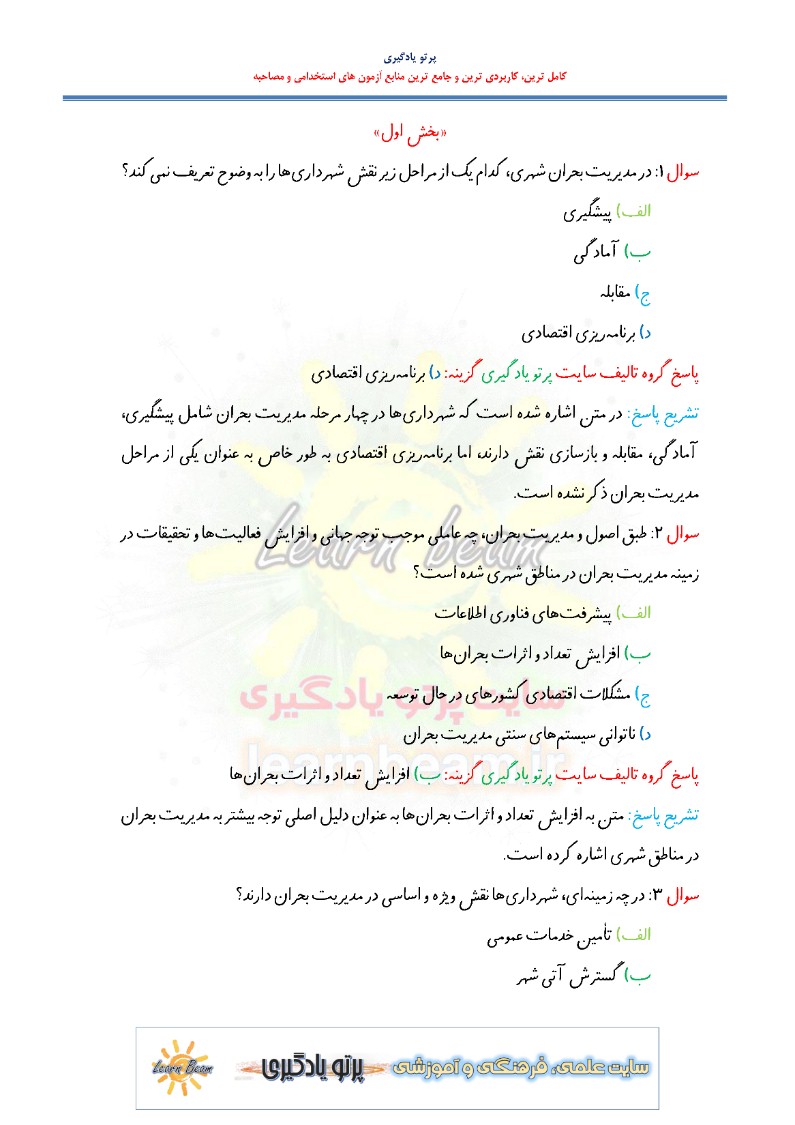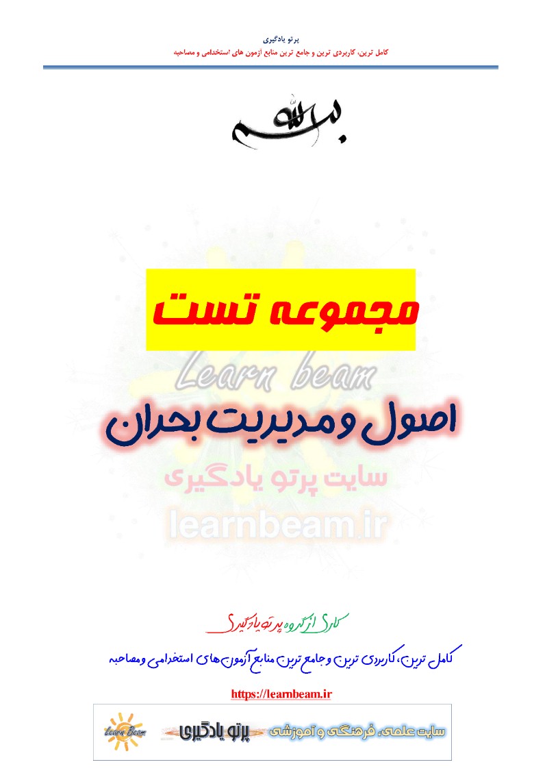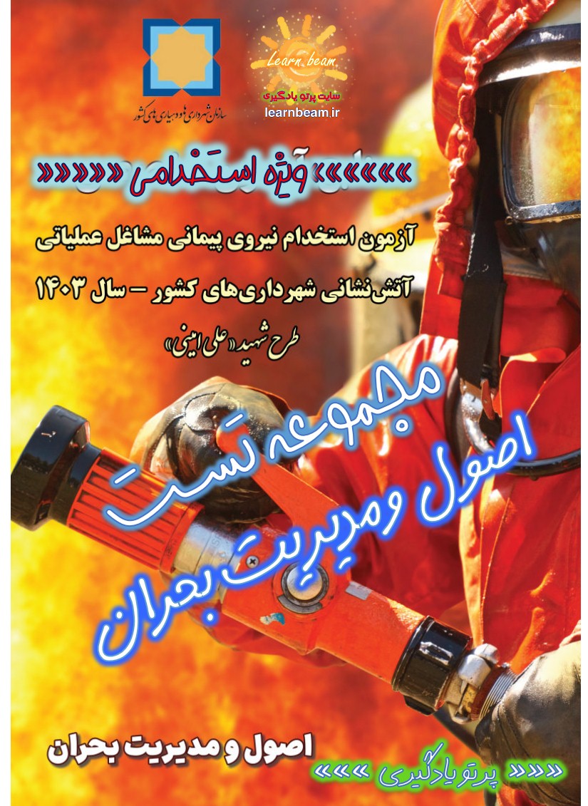 سوالات تستی اصول و مدیریت بحران شامل 260 تست با پاسخ تشریحی در 112 صفحه در قالب فایل pdf قابل چاپ با کیفیت عالی جهت انسجام ذهنی، خودآزمایی و مطالعه سریع داوطلبین شرکت کننده در آزمون استخدامی آتش نشانی شهرداری های کشور سال 1403 مطابق با دفترچه ثبت نام و مطابق با سرفصل های اعلام شده در دفترچه راهنمای ثبت نام می باشد.