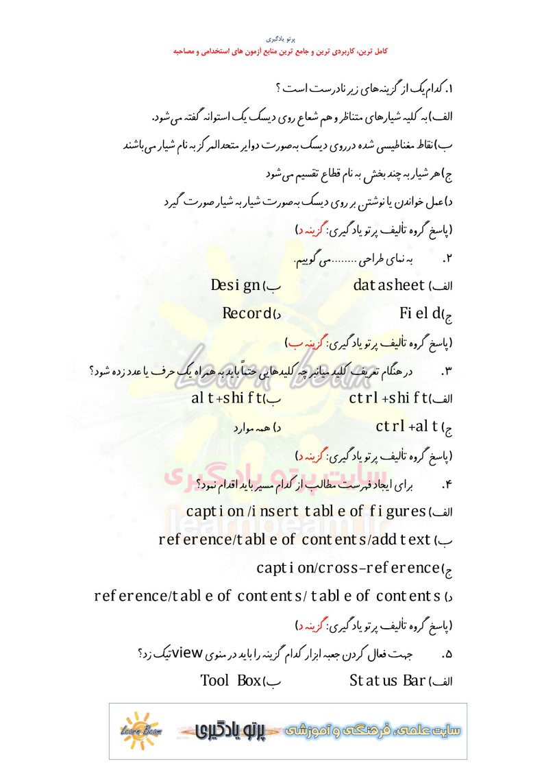 - تست مهارت های هفتگانه کامپیوتر ICDL (220 تست در 46 صفحه)