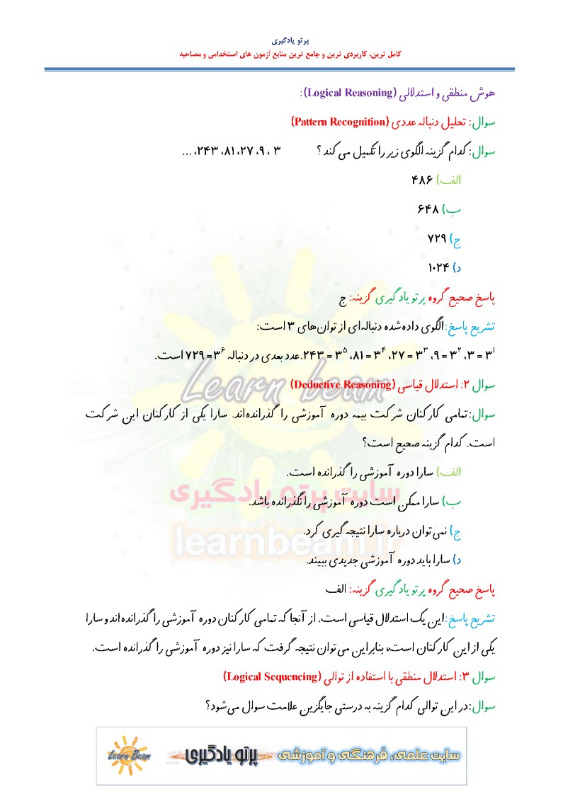 سوالات هوش و استعداد شغلی شامل 112 تست در 76 صفحه در قالب فایل pdf قابل چاپ با کیفیت عالی جهت انسجام ذهنی، خودآزمایی و مطالعه سریع داوطلبین شرکت کننده در آزمون های استخدامی بیمه ها مطابق با دفترچه ثبت نام و مطابق با سرفصل های اعلام شده در دفترچه راهنمای ثبت نام می باشد.