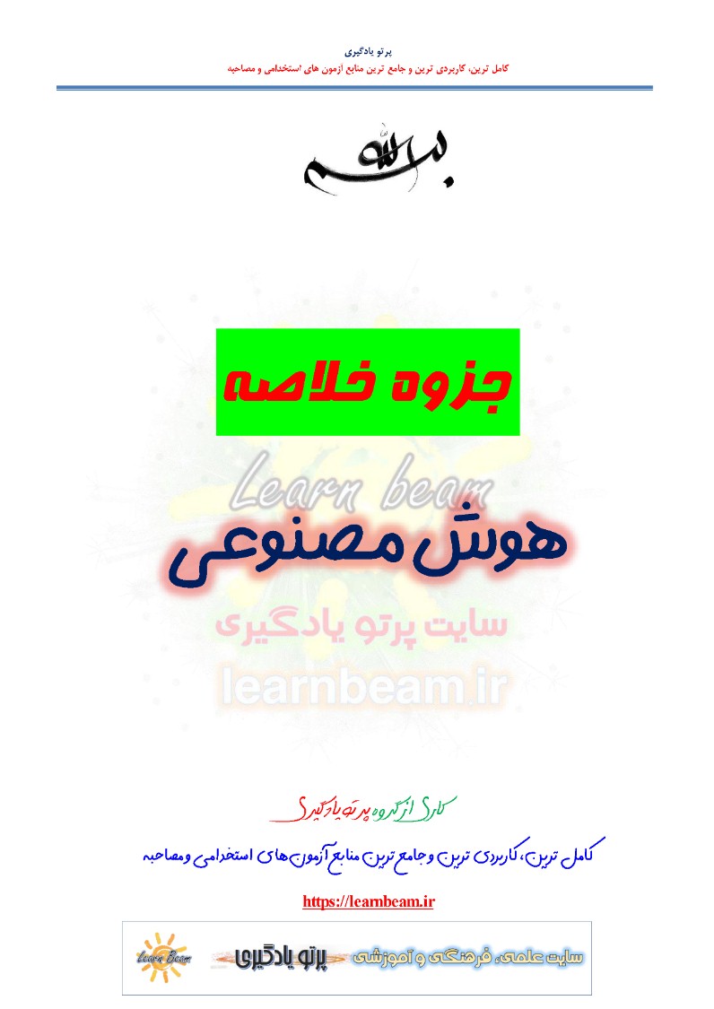 جزوه هوش مصنوعی جزوه خلاصه هوش مصنوعی در 79 صفحه در قالب فایل pdf می باشد. مجموعه خلاصه و نکات کلیدی هوش مصنوعی قابل چاپ با کیفیت عالی جهت انسجام ذهنی، خودآزمایی و مطالعه سریع داوطلبین شرکت کننده در آزمون های استخدامی مطابق با دفترچه راهنمای ثبت نام آزمون و اصلاحیه نهایی می باشد. اگر به دنبال راهی سریع و مؤثر برای درک مفاهیم مهم هوش مصنوعی هستید، جزوه خلاصه هوش مصنوعی منبعی بینظیر برای داوطلبین و حرفهایها است که میخواهند با صرف کمترین زمان، بیشترین بهرهوری را داشته باشند. با این جزوه، نکات کلیدی را به سرعت بیاموزید و در آزمونها و پروژهها بدرخشید.