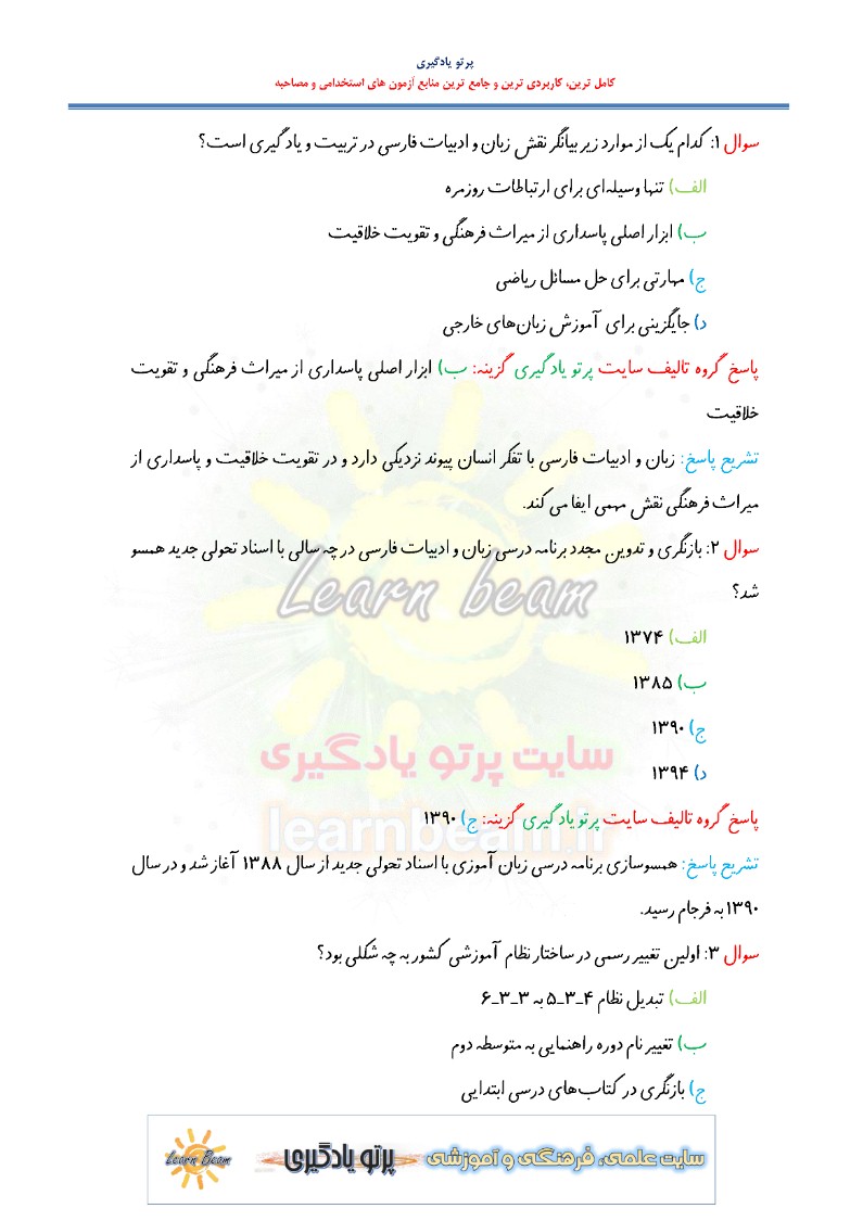 4. تست منابع عمومی آزمون استخدامی آموزش و پرورش سال ۱۴۰۳
