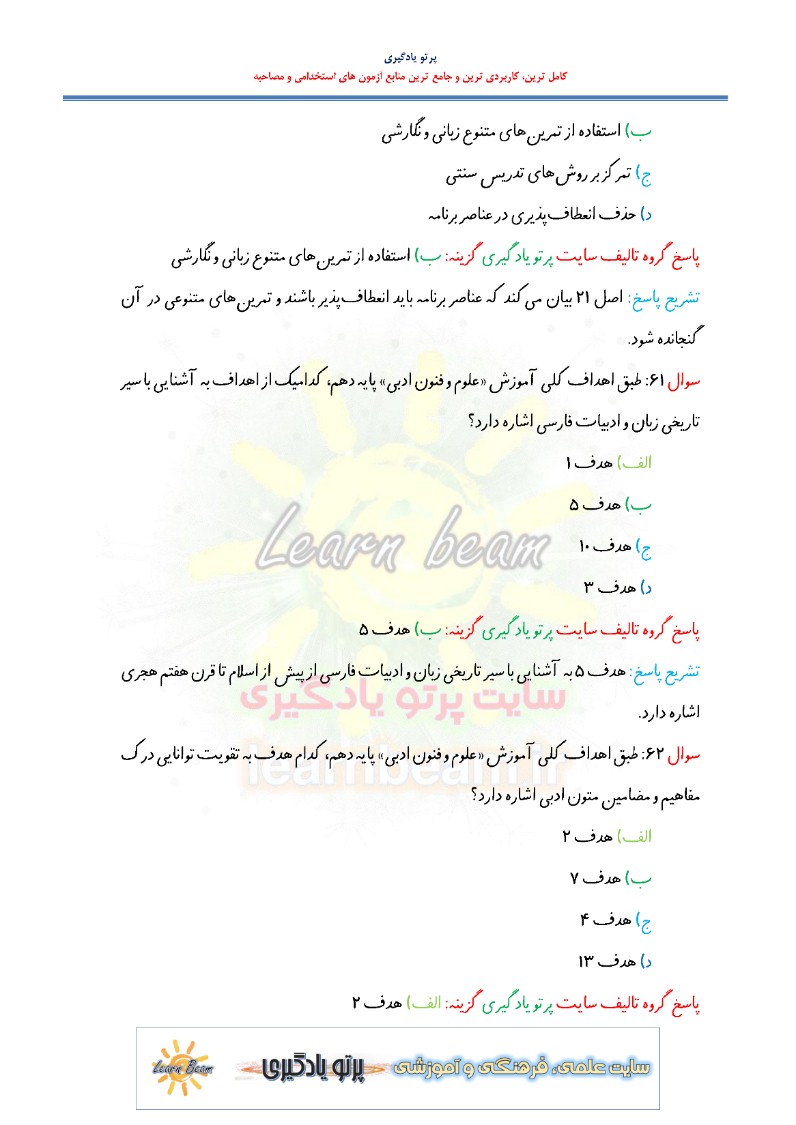 تست کتاب راهنمای معلم علوم و فنون ادبی 1 پایه دهم متوسطه