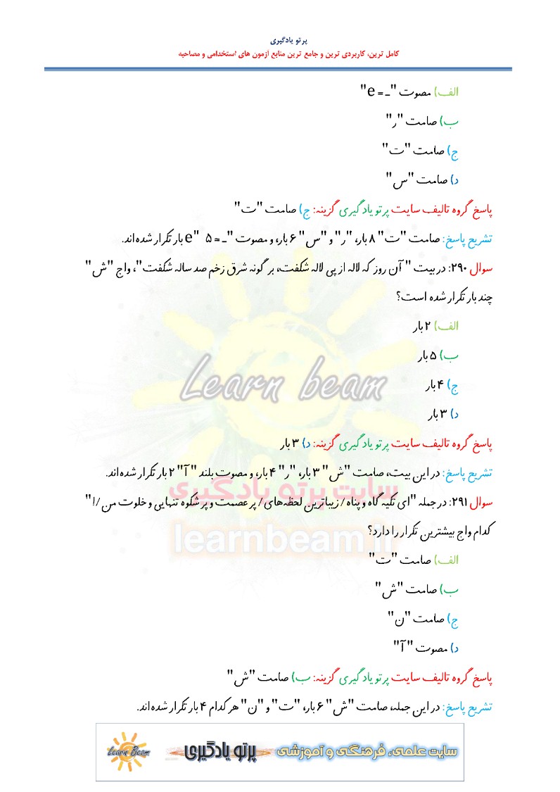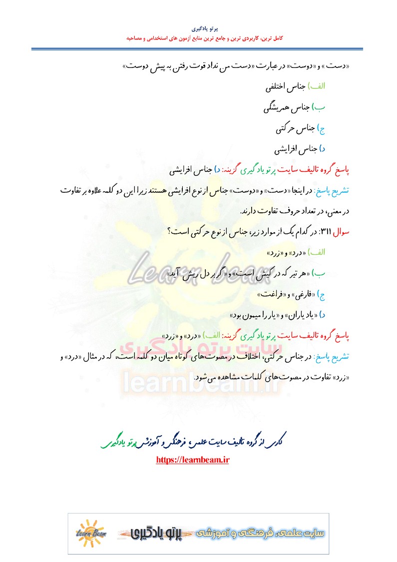 تست کتاب راهنما معلم علوم و فنون ادبی 2 پایه یازدهم متوسطه