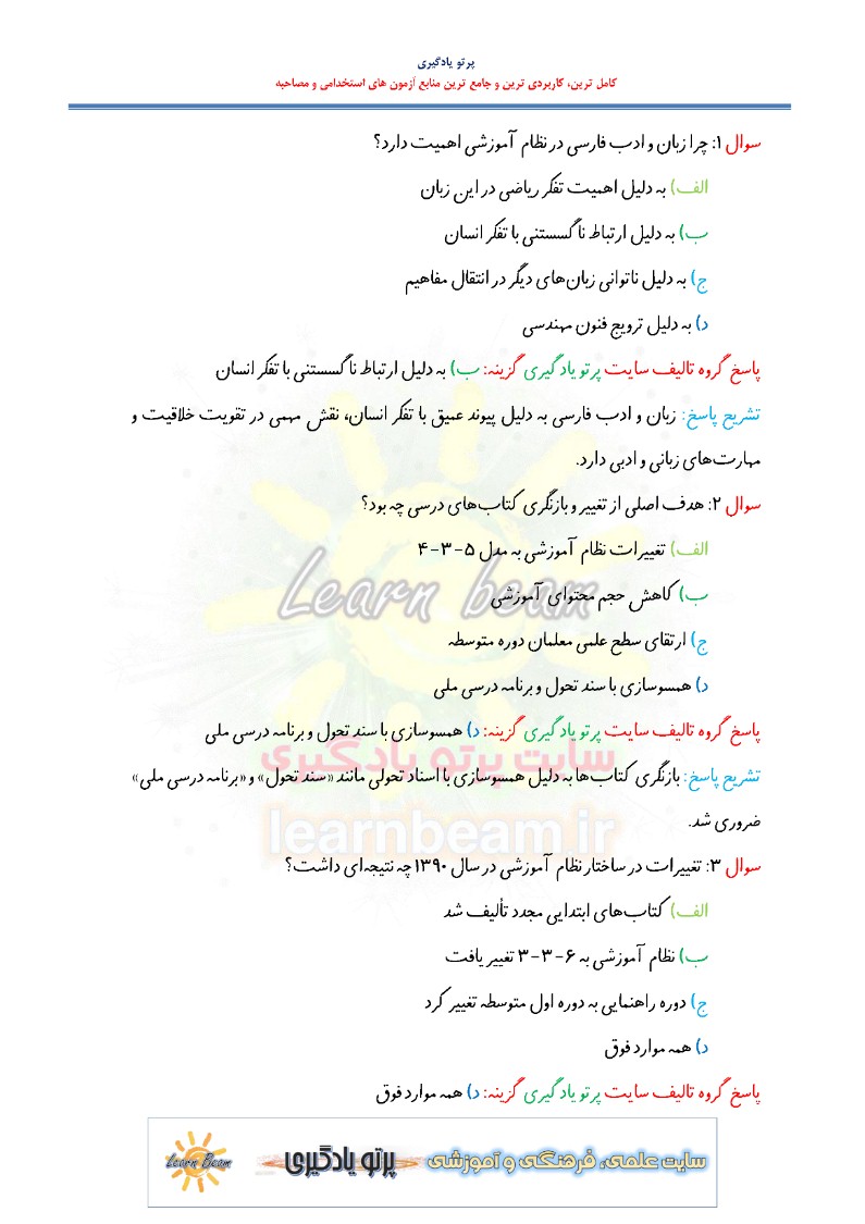 4. تست منابع عمومی آزمون استخدامی آموزش و پرورش سال ۱۴۰۳