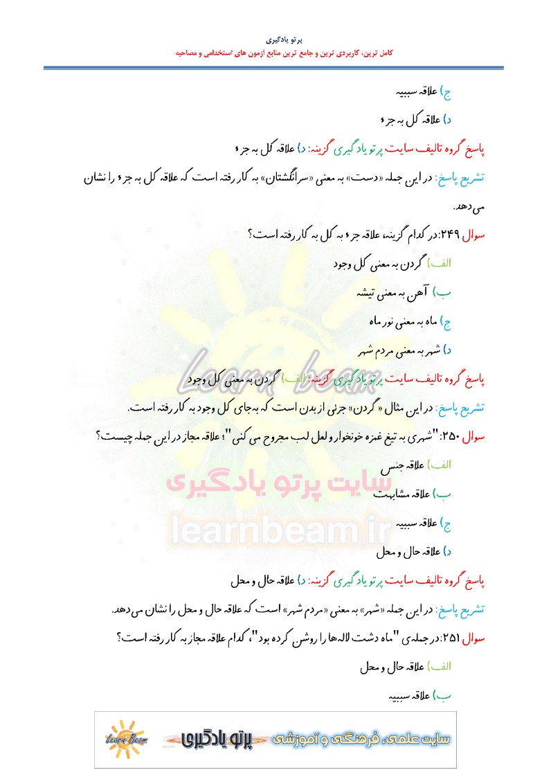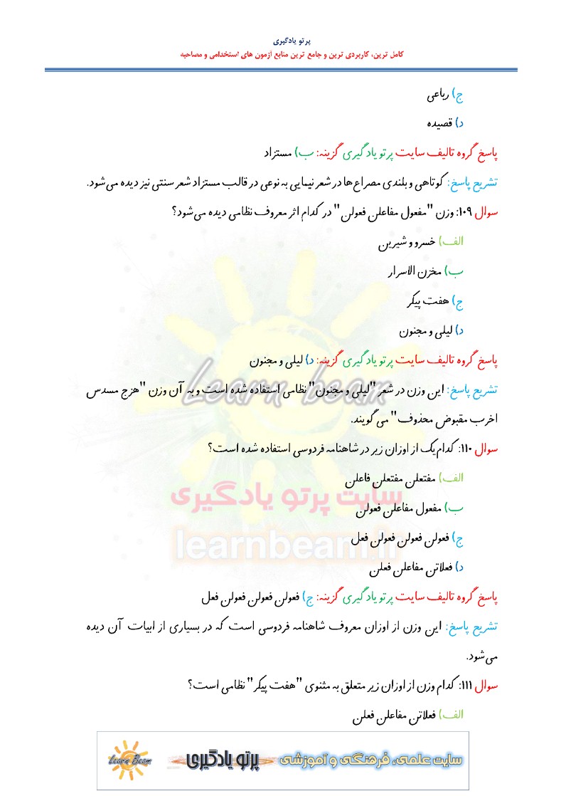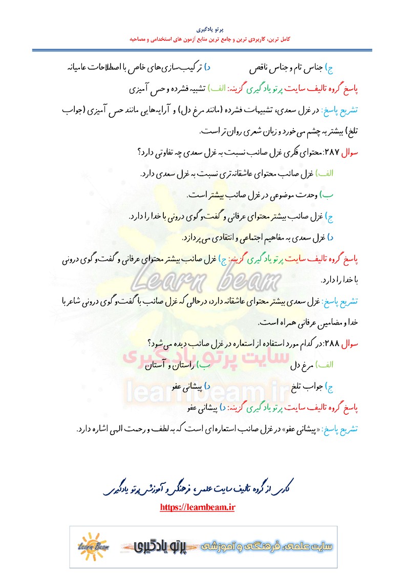 تست کتاب راهنمای معلم علوم و فنون ادبی 3 پایه دوازدهم متوسطه