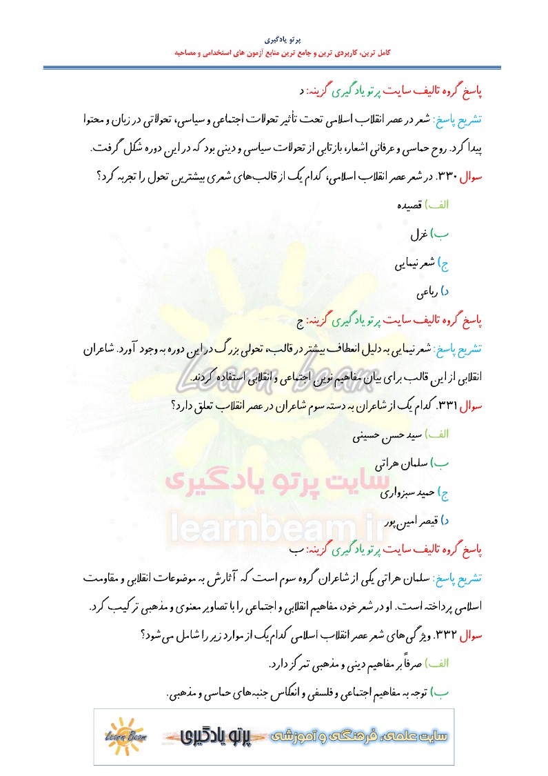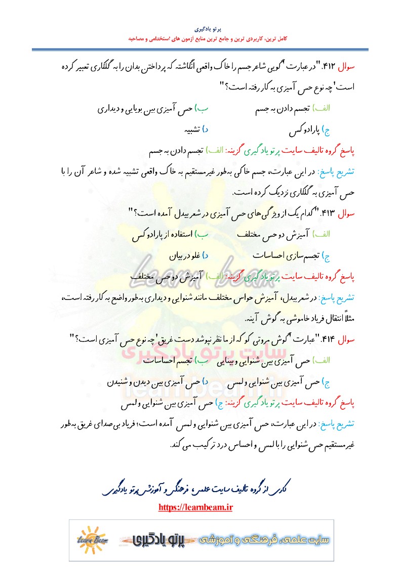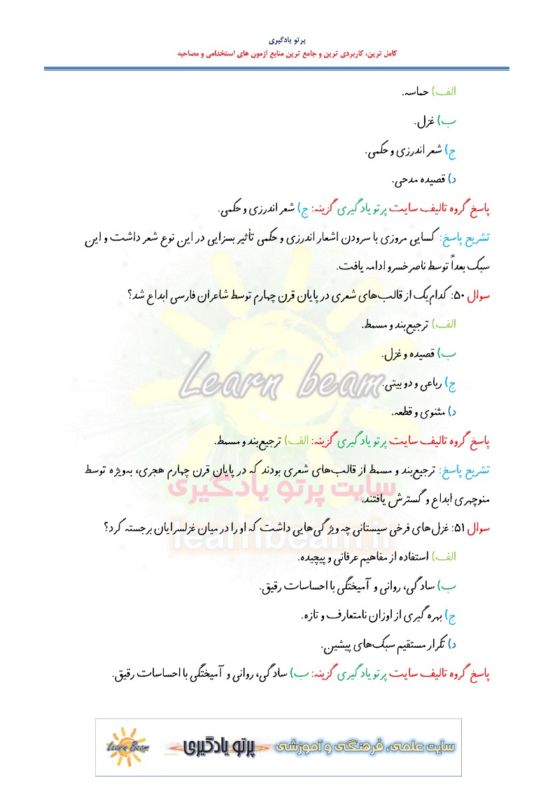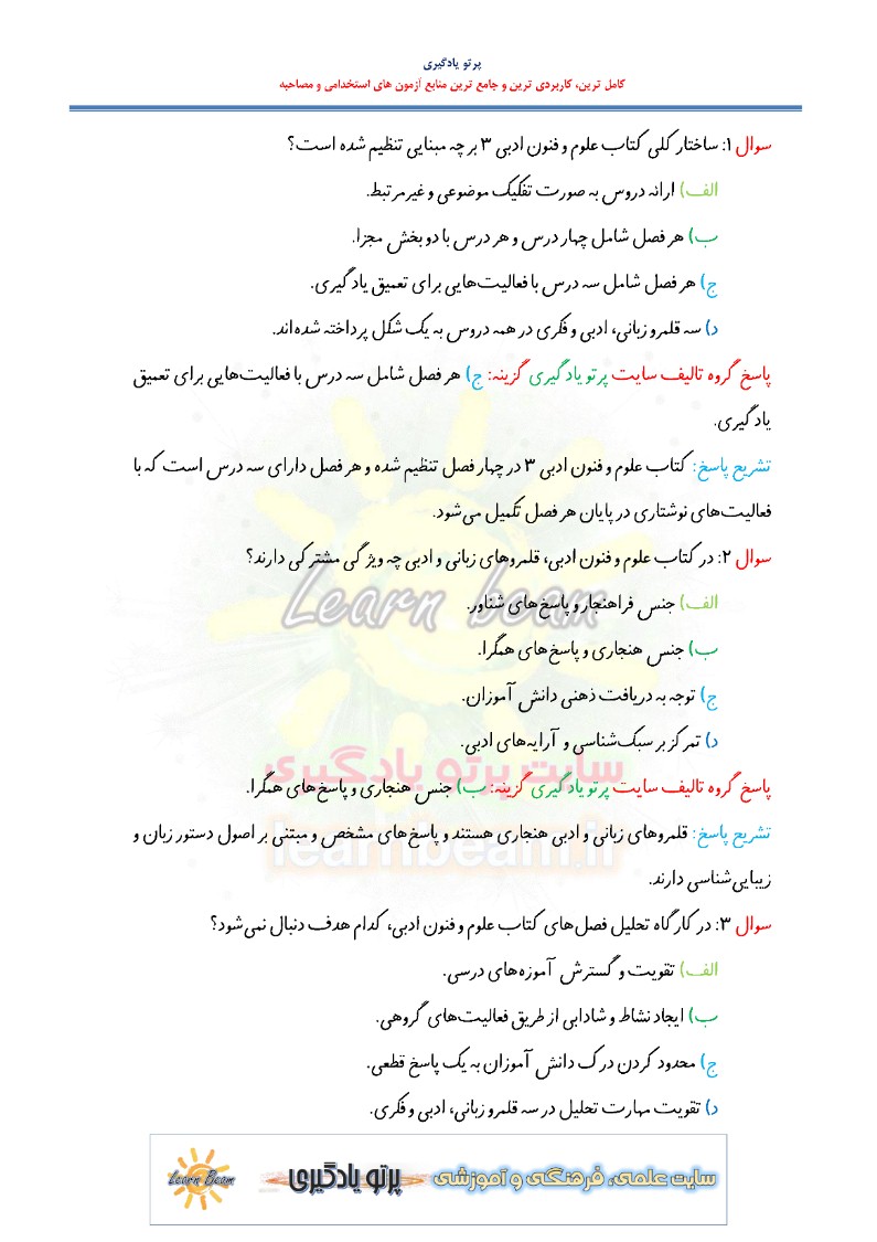 تست کتاب راهنمای معلم علوم و فنون ادبی 3 پایه دوازدهم متوسطه