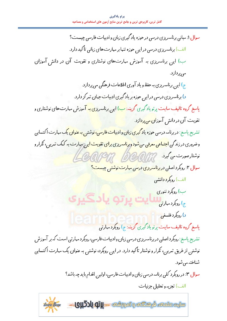 تست کتاب راهنمای معلم نگارش 2 پایه یازدهم متوسطه
