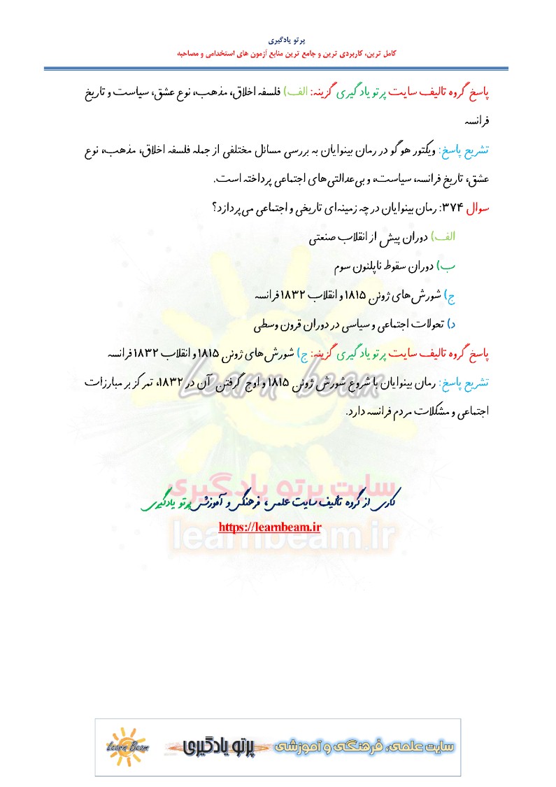 تست کتاب راهنما معلم علوم و فنون ادبی 3 پایه دوازدهم متوسطه