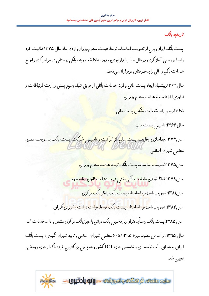 مجموعه سوالات آمادگی برای مصاحبه استخدامی نیروی انسانی پست بانک