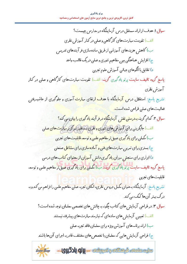 تست کتاب راهنمای معلم آزمایشگاه علوم تجربی پایه یازدهم متوسطه