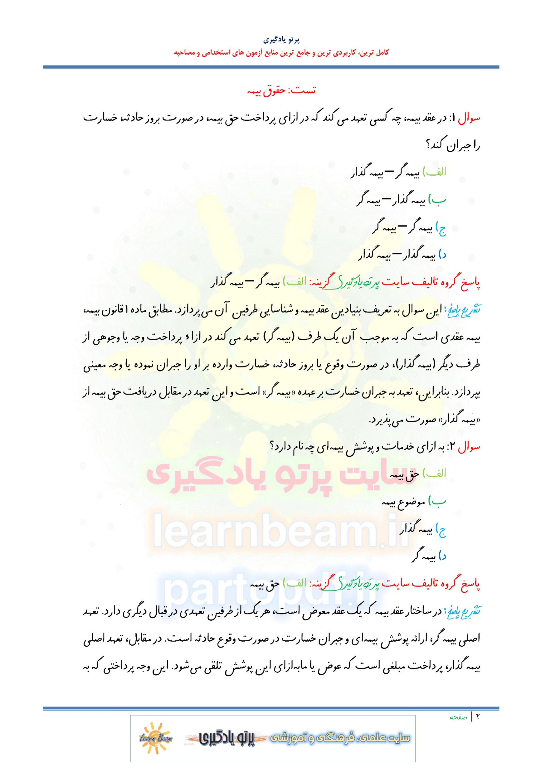 سوالات و تست حقوق بیمه