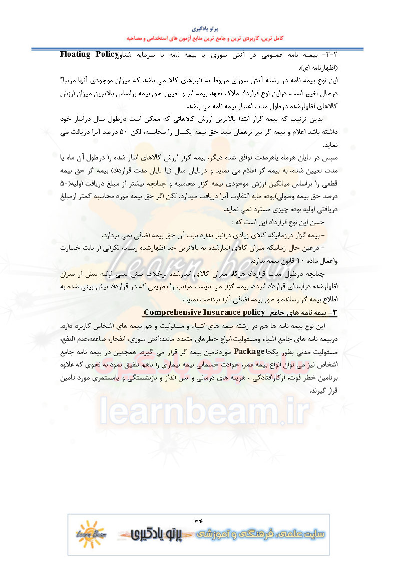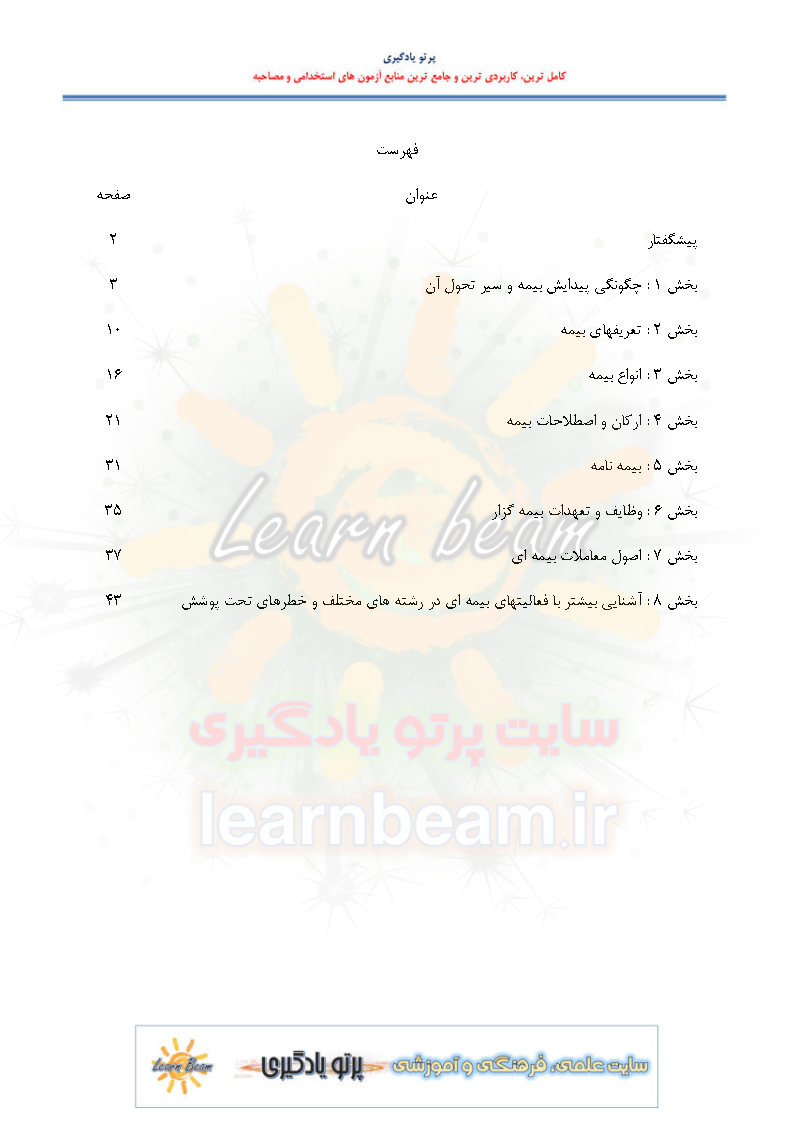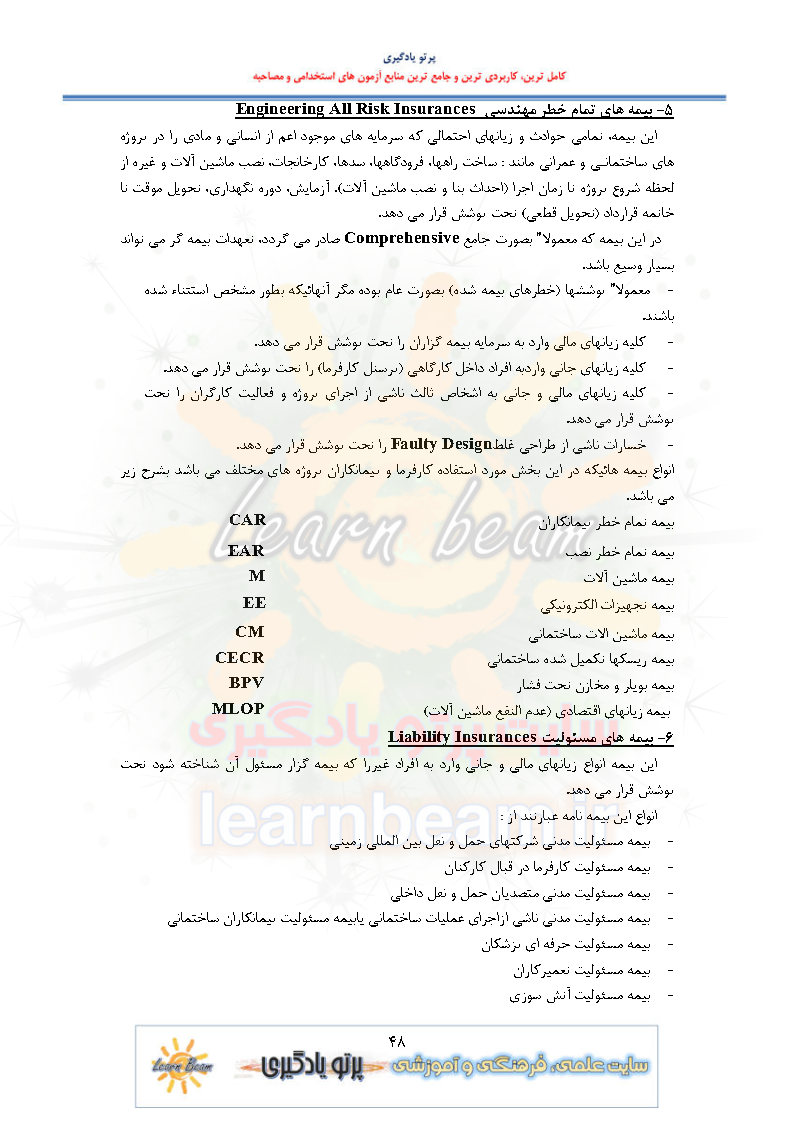 جزوه اصول و کلیات بیمه در 51 صفحه در قالب فایل pdf قابل چاپ با کیفیت عالی جهت انسجام ذهنی، خودآزمایی و مطالعه سریع داوطلبین شرکت کننده در آزمون های استخدامی بیمه ها مطابق با دفترچه ثبت نام و مطابق با سرفصل های اعلام شده در دفترچه راهنمای ثبت نام می باشد.