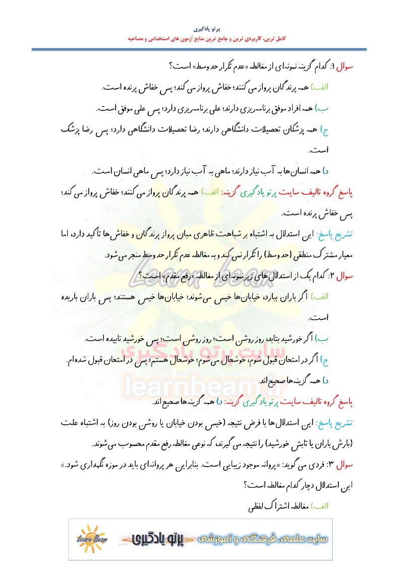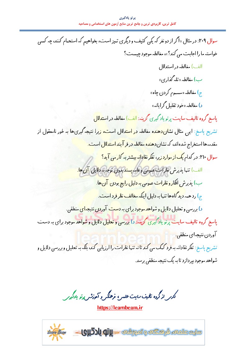 تست کتاب راهنمای معلم منطق پایه دهم متوسطه