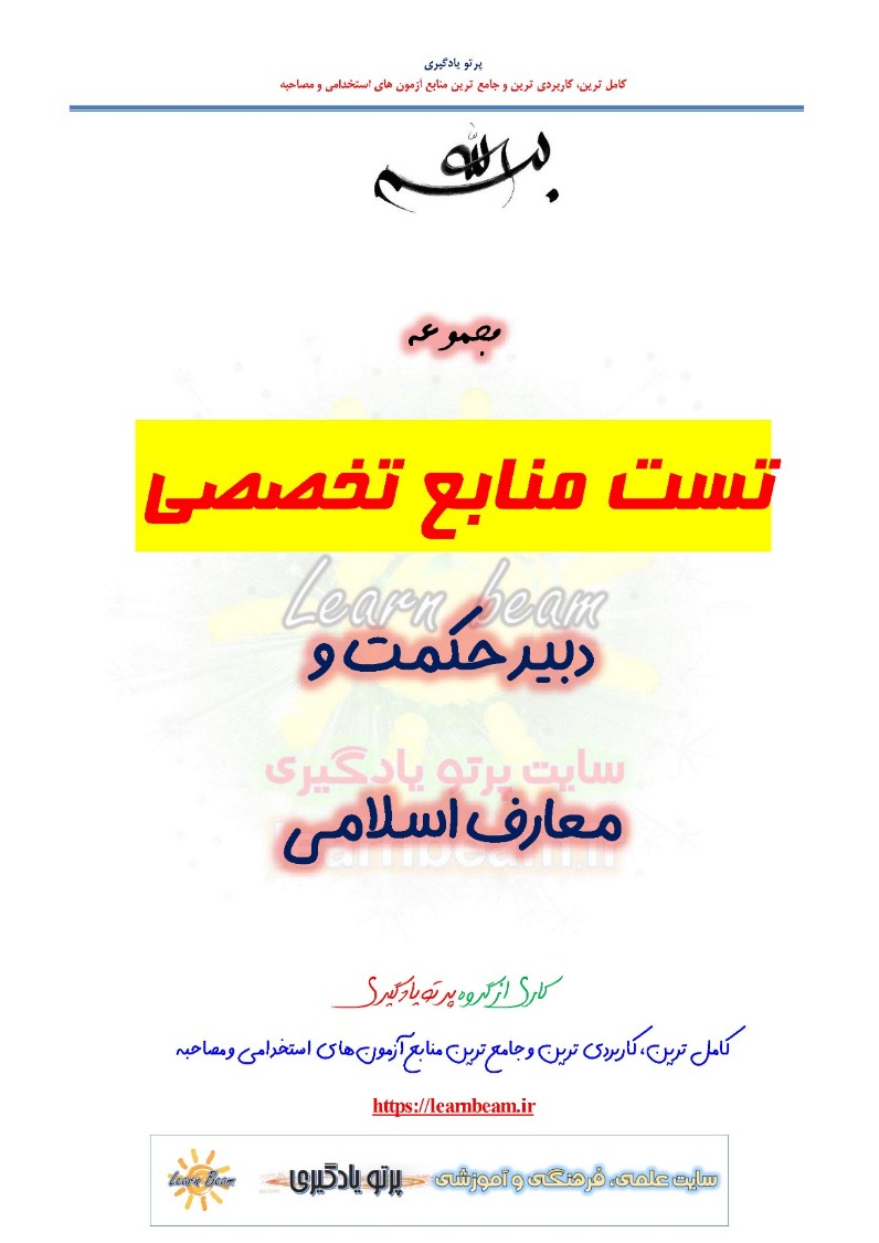 تست منابع تخصصی دبیری حکمت و معارف اسلامی آموزش و پرورش
