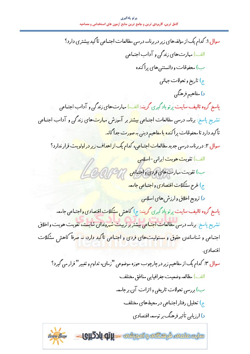 تست کتاب راهنمای معلم مطالعات اجتماعی پایه هفتم