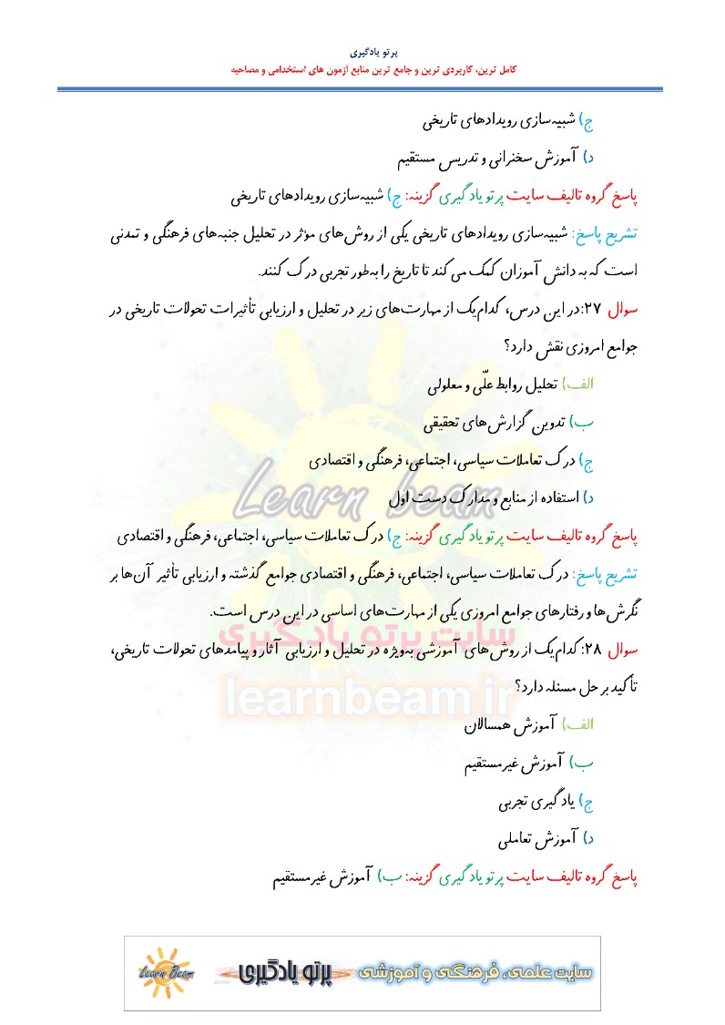 تست کتابراهنمای معلم تاریخ ایران و جهان معاصرپایه دوازدهم