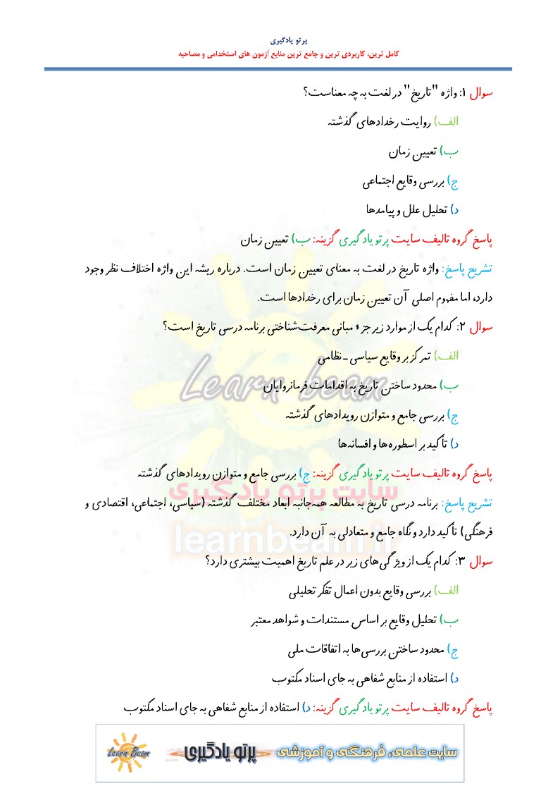 مجموعه تست راهنمای معلم تاریخ 2 پایه یازدهم با پاسخ تشریحی