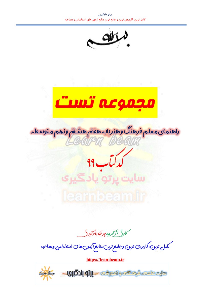 تست خلاصه راهنمای معلم فرهنگ و هنر پایه هفتم هشتم و نهم متوسطه کد کتاب 99