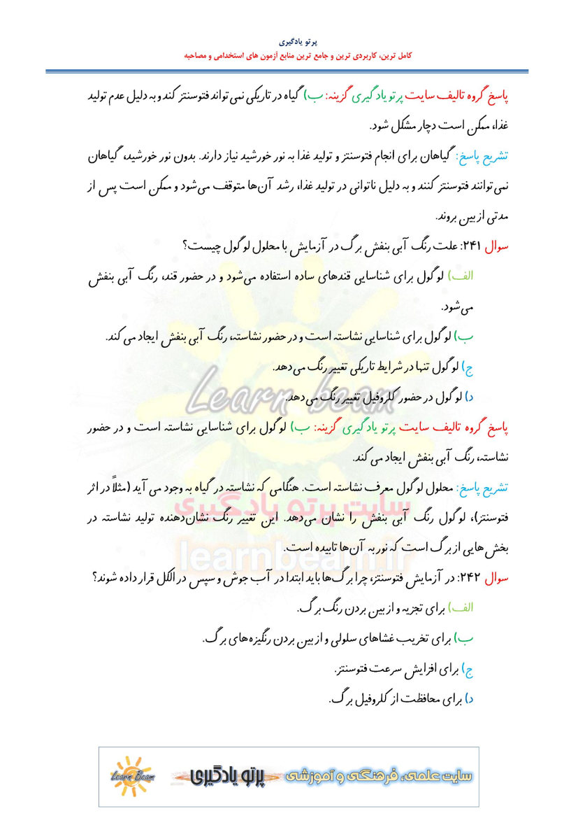1) تست راهنمای معلم علوم تجربی پایه هفتم کد کتاب 77 (150 تست در 36 صفحه)