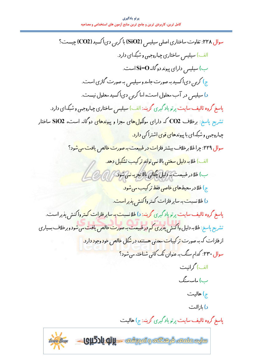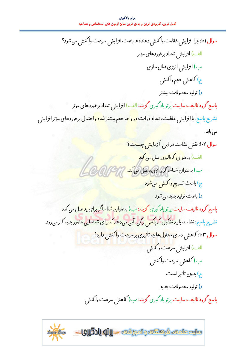 4) تست کتاب راهنمای معلم شیمی 1 کد کتاب 110372 (262 تست در 97 صفحه)