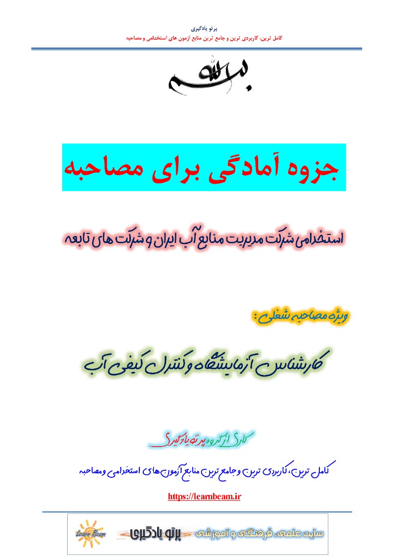 جزوه مصاحبه استخدامی کارشناس آزمایشگاه و کنترل کیفی آب