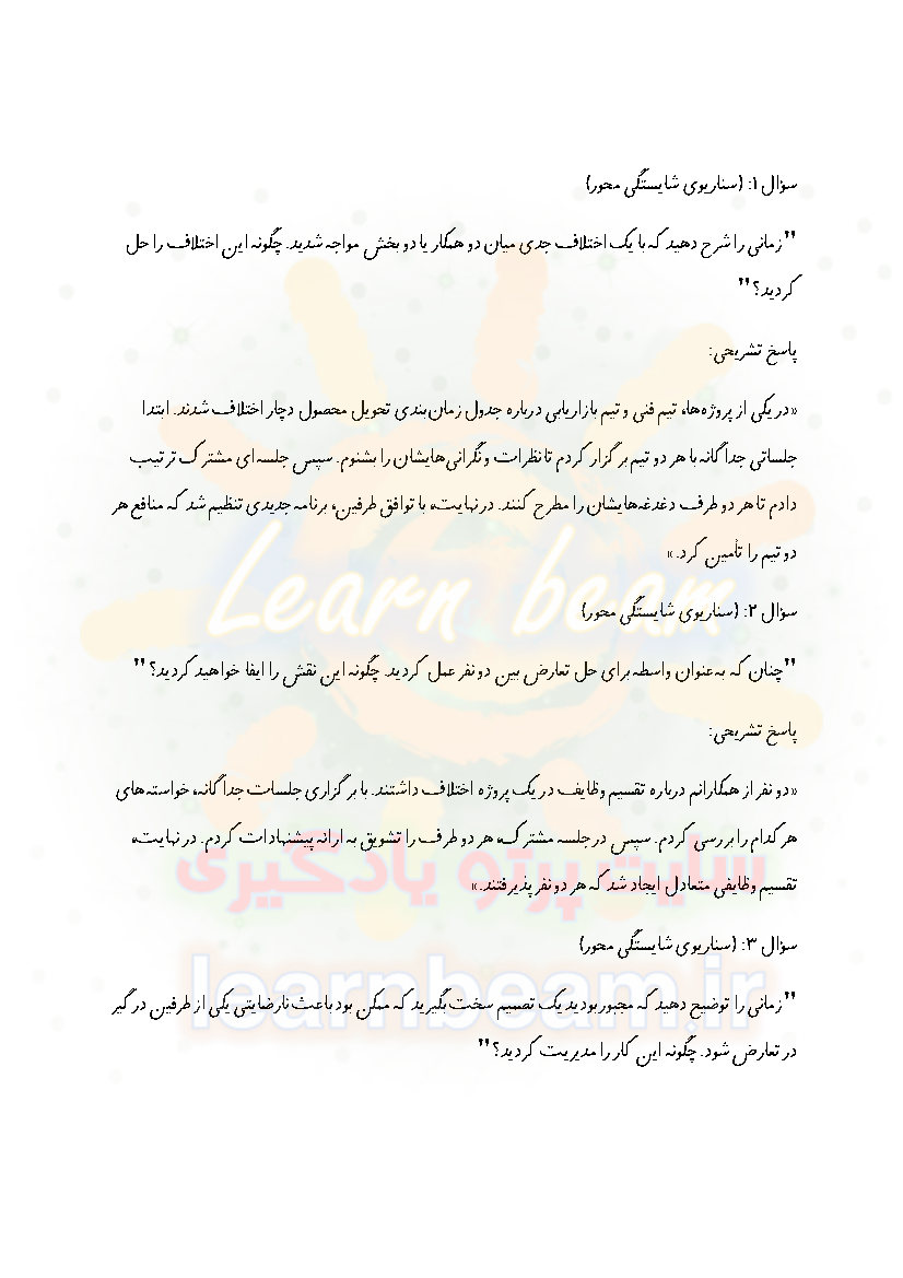 سوالات در قالب سناریو و مصاحبه شایسته محور و مباحث عمومی و تخصصی