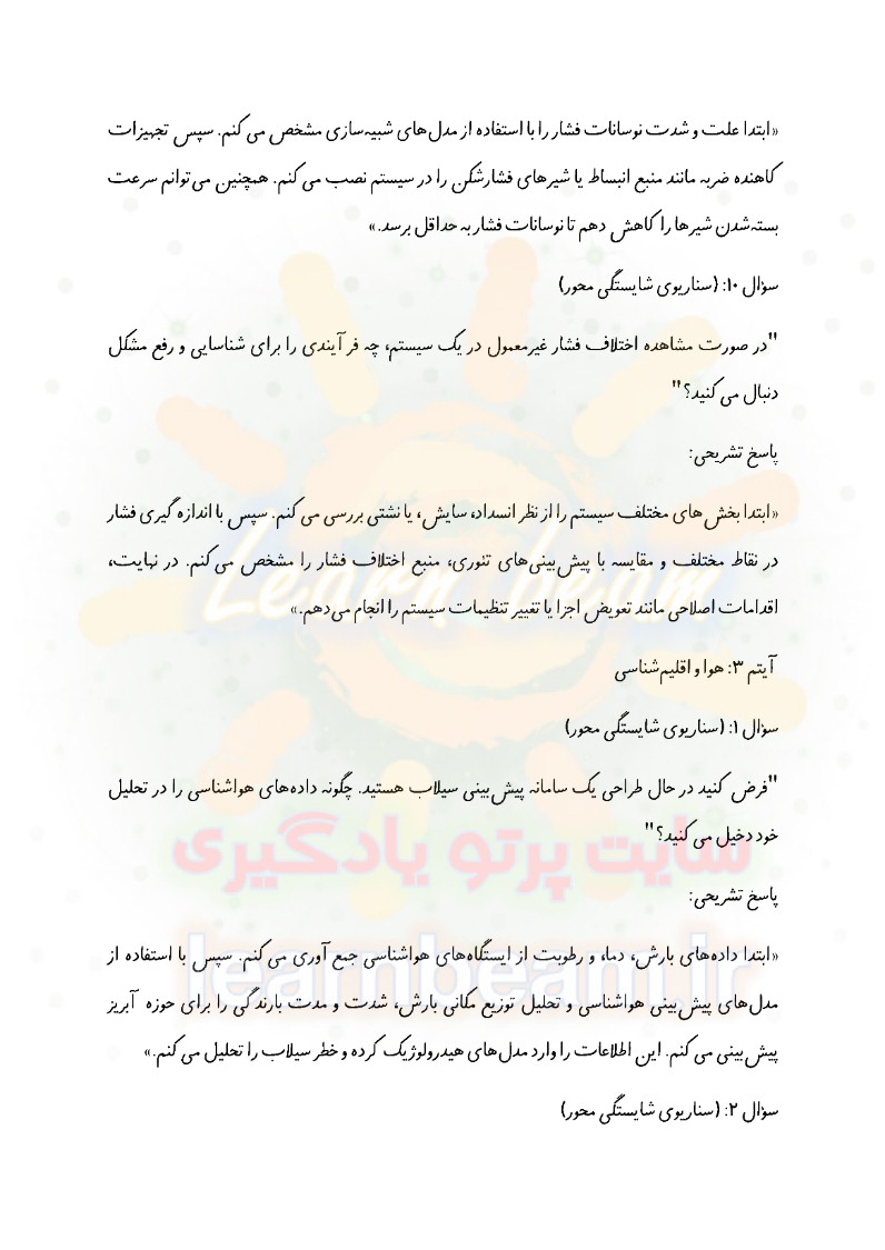 سوالات در قالب سناریو و مصاحبه شایسته محور و مباحث عمومی و تخصصی