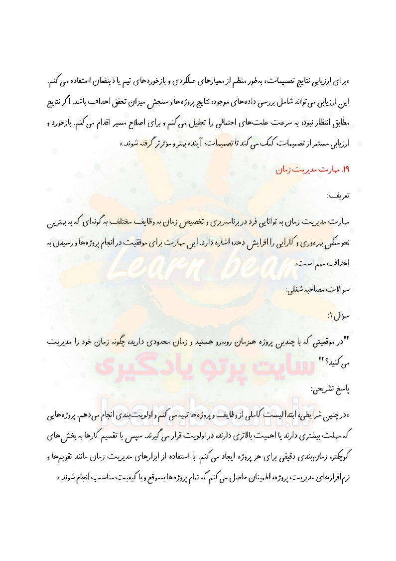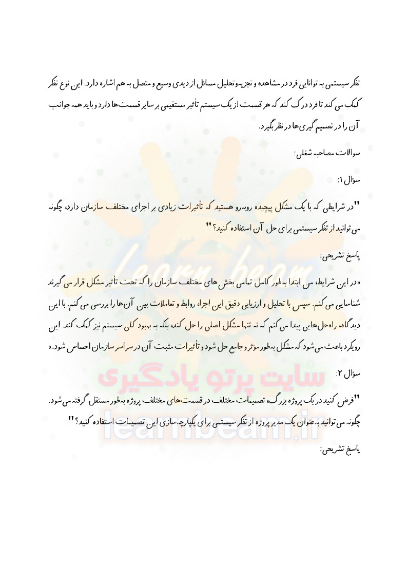 سوالات در قالب سناریو و مصاحبه شایسته محور و مباحث عمومی و تخصصی