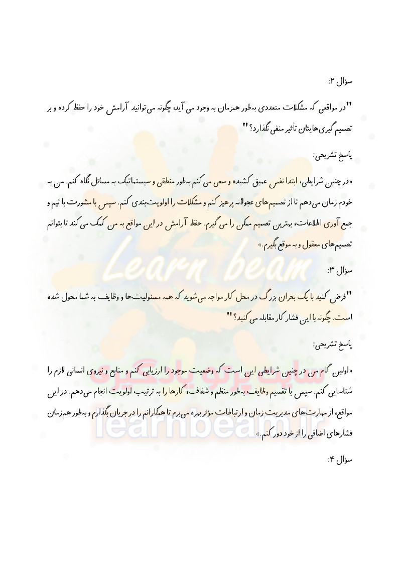 سوالات در قالب سناریو و مصاحبه شایسته محور و مباحث عمومی و تخصصی