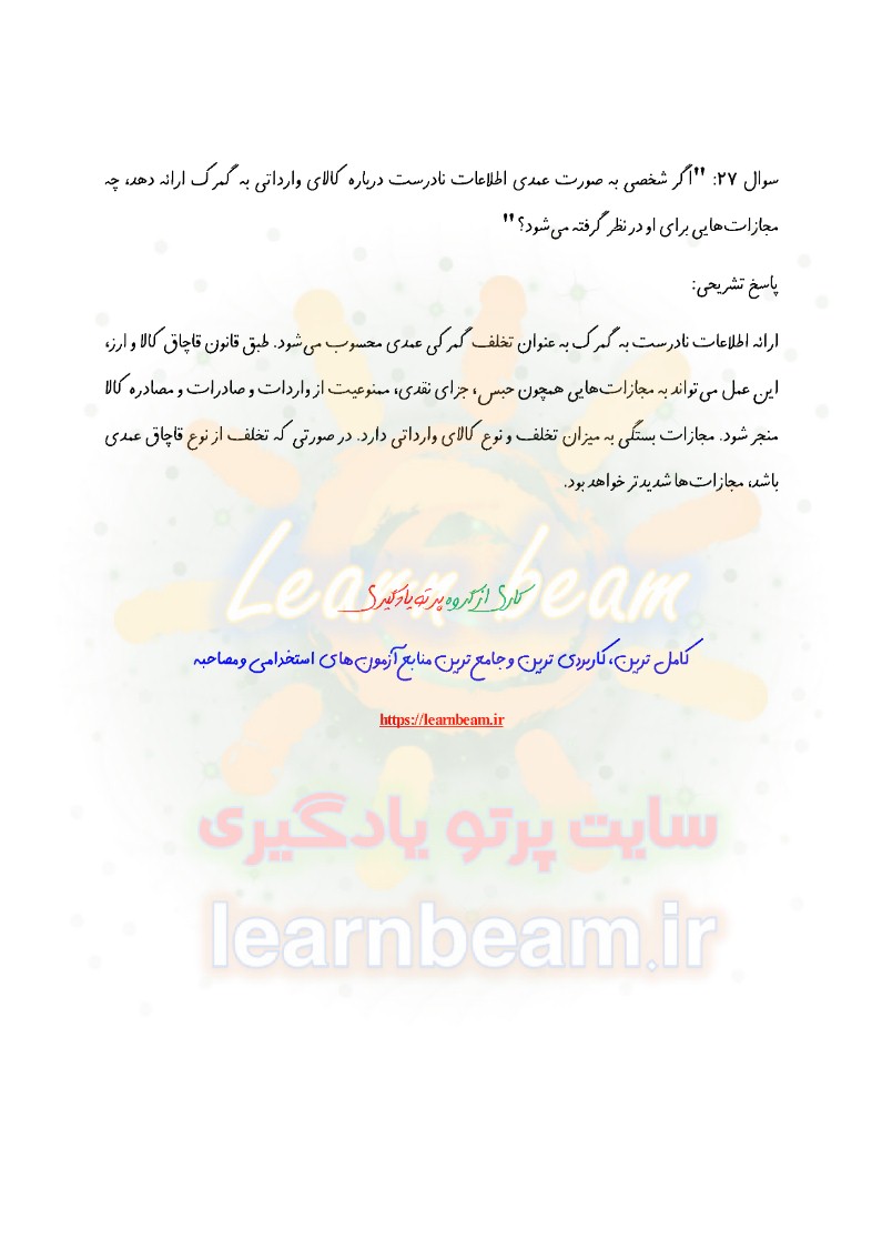جزوه سوالات مصاحبه کارشناس حقوقی استخدامی گمرک جمهوری اسلامی ایران. مجموعه سوالات آمادگی برای مصاحبه کارشناس حقوقی استخدامی گمرک جمهوری اسلامی ایران. گمرک جمهوری اسلامی ایران در نظر دارد نیروهای مورد نیاز خود را پس از کسب موفقیت در آزمون کتبی، با انجام مصاحبه های تخصصی، عمومی و طی مراحل اداری تامین کند. این مجموعه برای آمادگی عزیزان پذیرفته شده برای مصاحبه در مرحله اول آزمون استخدامی دوازدهمین دوره استخدامی دستگاه های اجرایی کشور تهیه گردیده است. مجموعه سوالات آمادگی برای مصاحبه استخدامی کارشناس حقوقی برای حضور توانمند عزیزان در کانون های مصاحبه تالیف گردیده است. این مجموعه شامل: کلیات مصاحبه و آمادگی برای آن سوالات گزینش و سوالات عمومی و تخصصی در 275 صفحه در قالب فایل pdf با محتوای جامع و نکات کلیدی، کلید موفقیت شما در استخدام در گمرک جمهوری اسلامی ایران تهیه گردیده است.