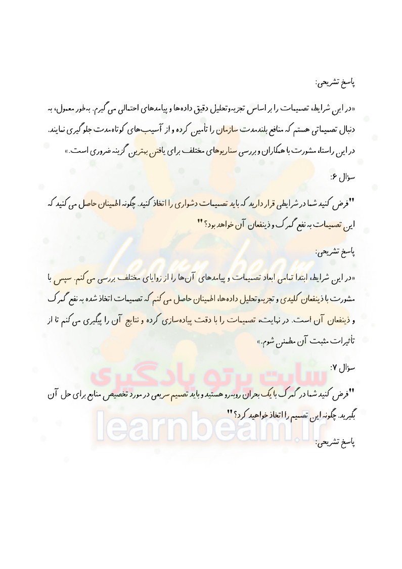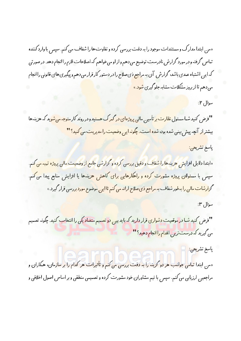 سوالات در قالب سناریو و مصاحبه شایسته محور و مباحث عمومی و تخصصی