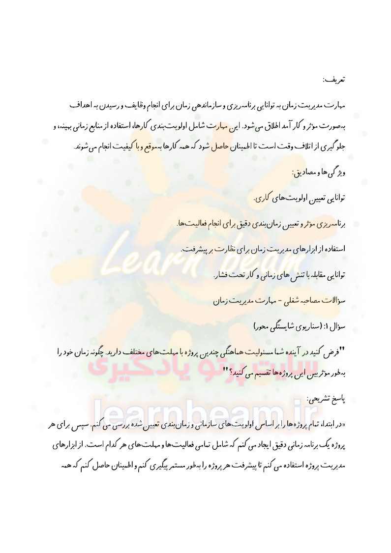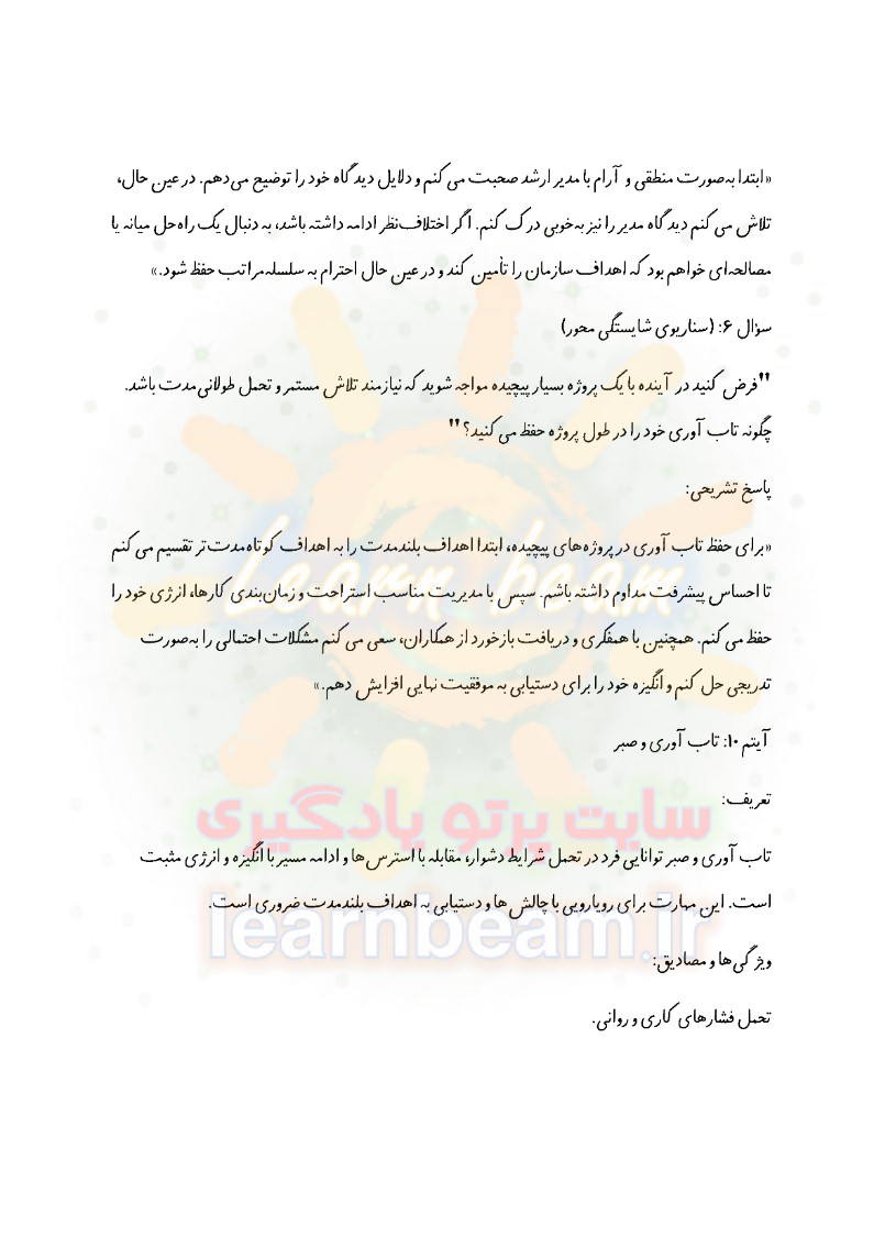 سوالات در قالب سناریو و مصاحبه شایسته محور و مباحث عمومی و تخصصی