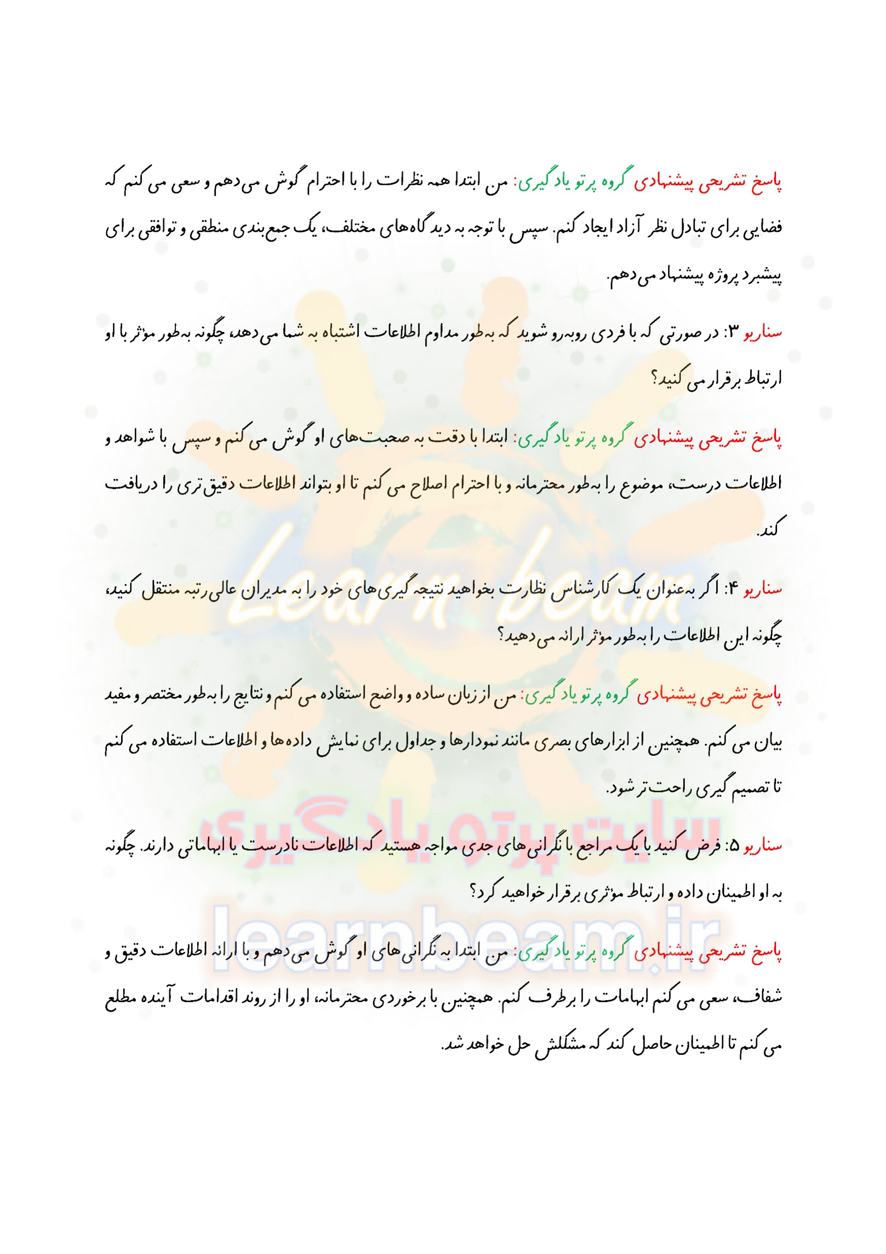 سوالات در قالب سناریو و مصاحبه شایسته محور و مباحث عمومی و تخصصی