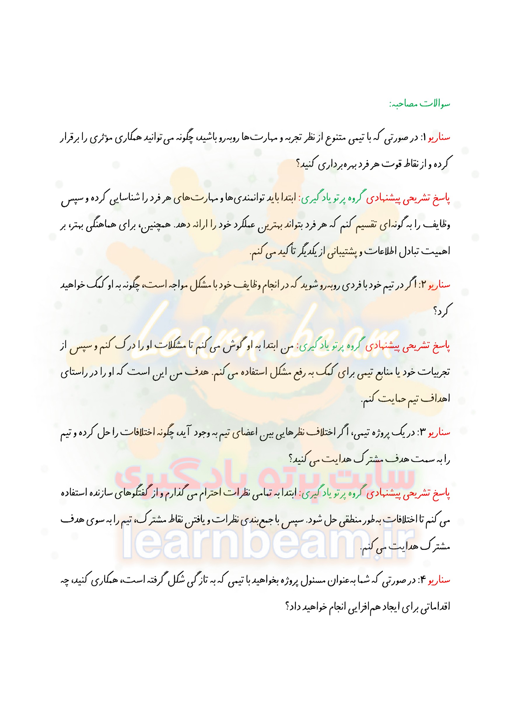 سوالات در قالب سناریو و مصاحبه شایسته محور و مباحث عمومی و تخصصی