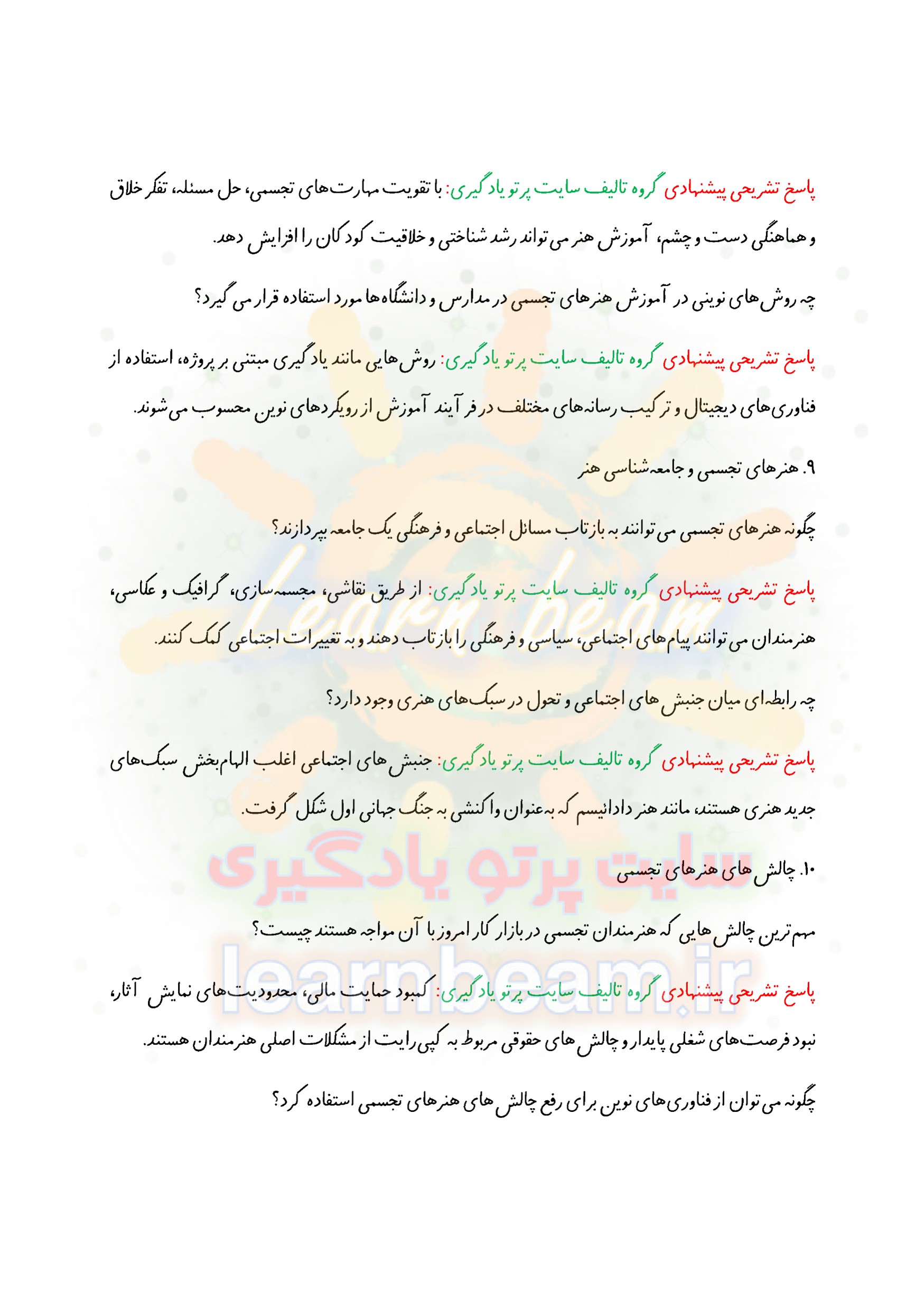 جزوه سوالات مصاحبه استخدامی هنرمند هنرهای تجسمی