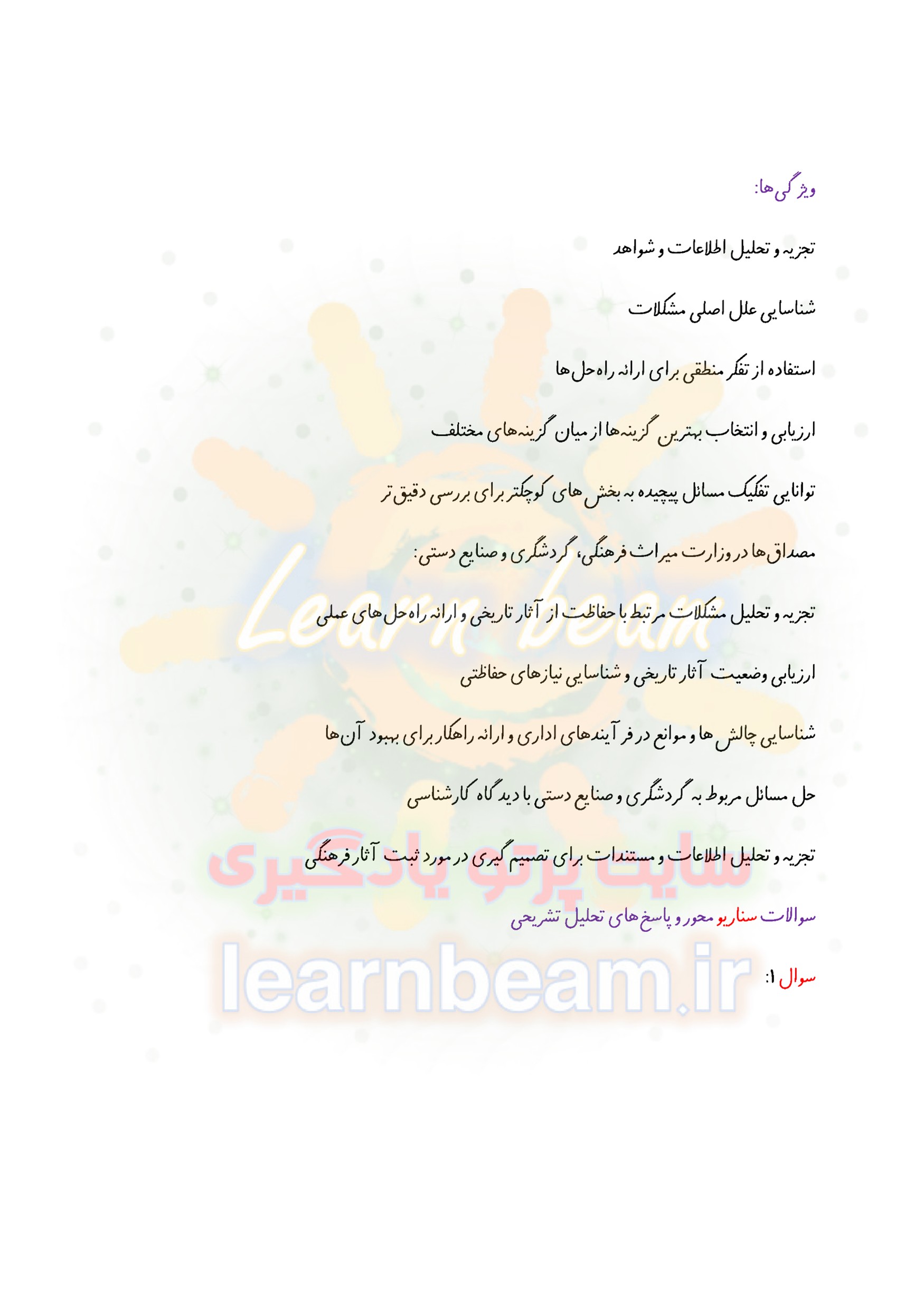 سوالات در قالب سناریو و مصاحبه شایسته محور و مباحث عمومی و تخصصی