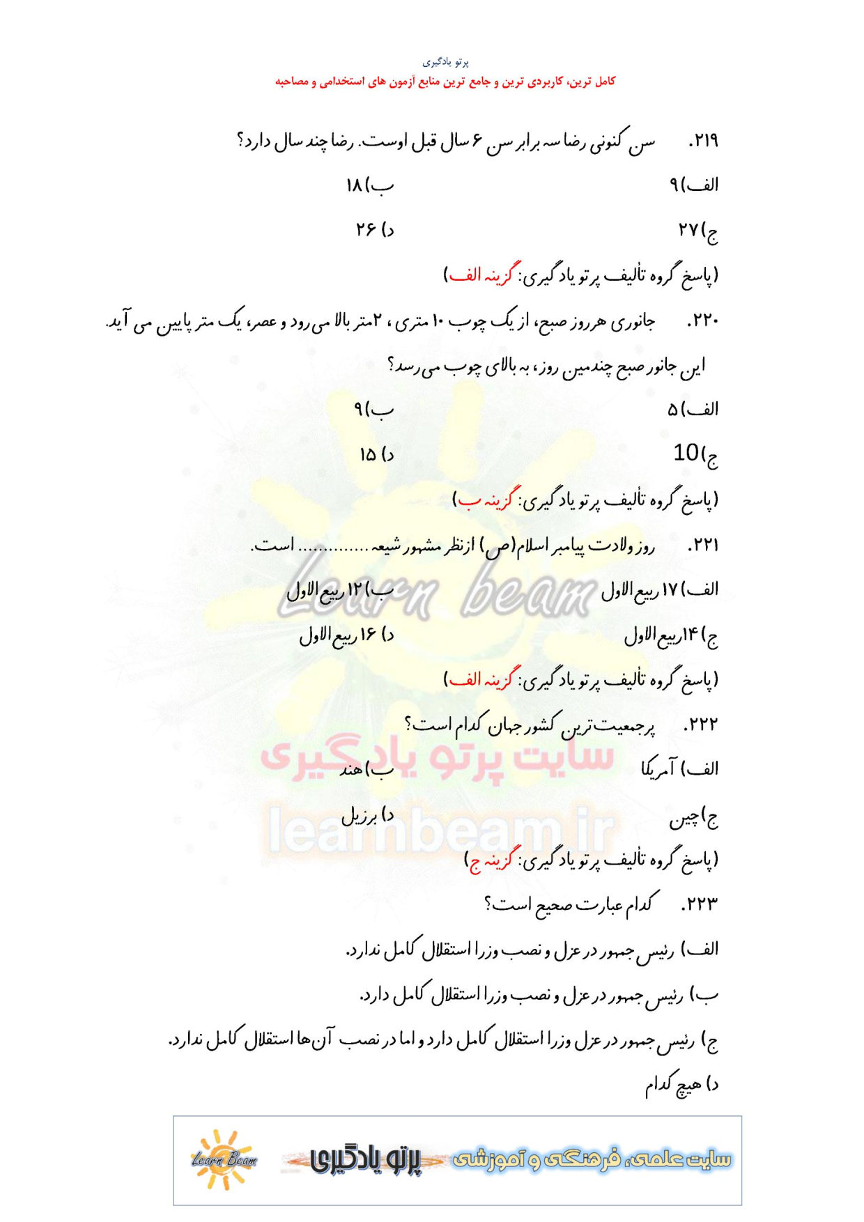 - تست اطلاعات عمومی، دانش اجتماعی و حقوق اساسی (120 تست در 25 صفحه pdf)