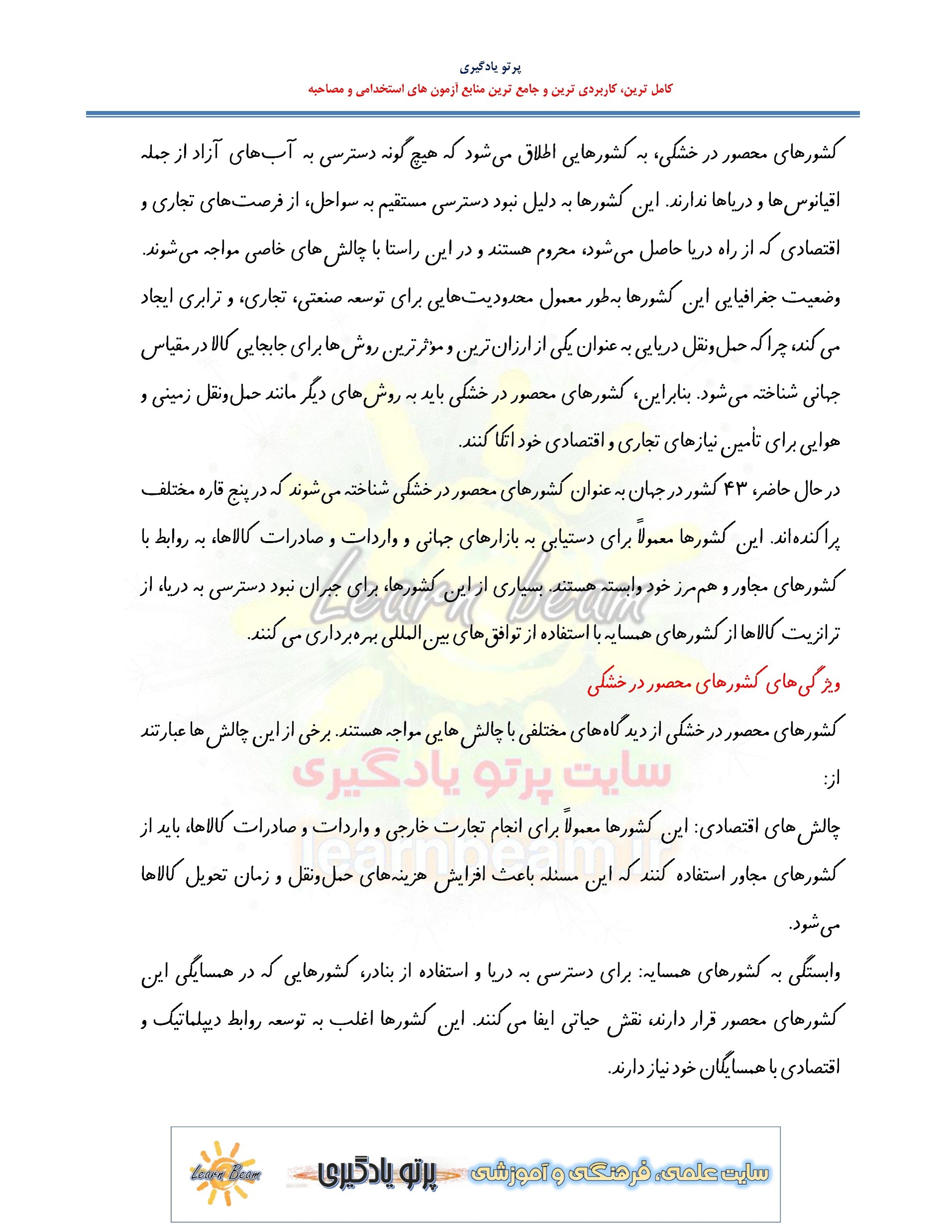 تست کتاب راهنمای معلم جغرافیای ایران پایه دهم متوسطه