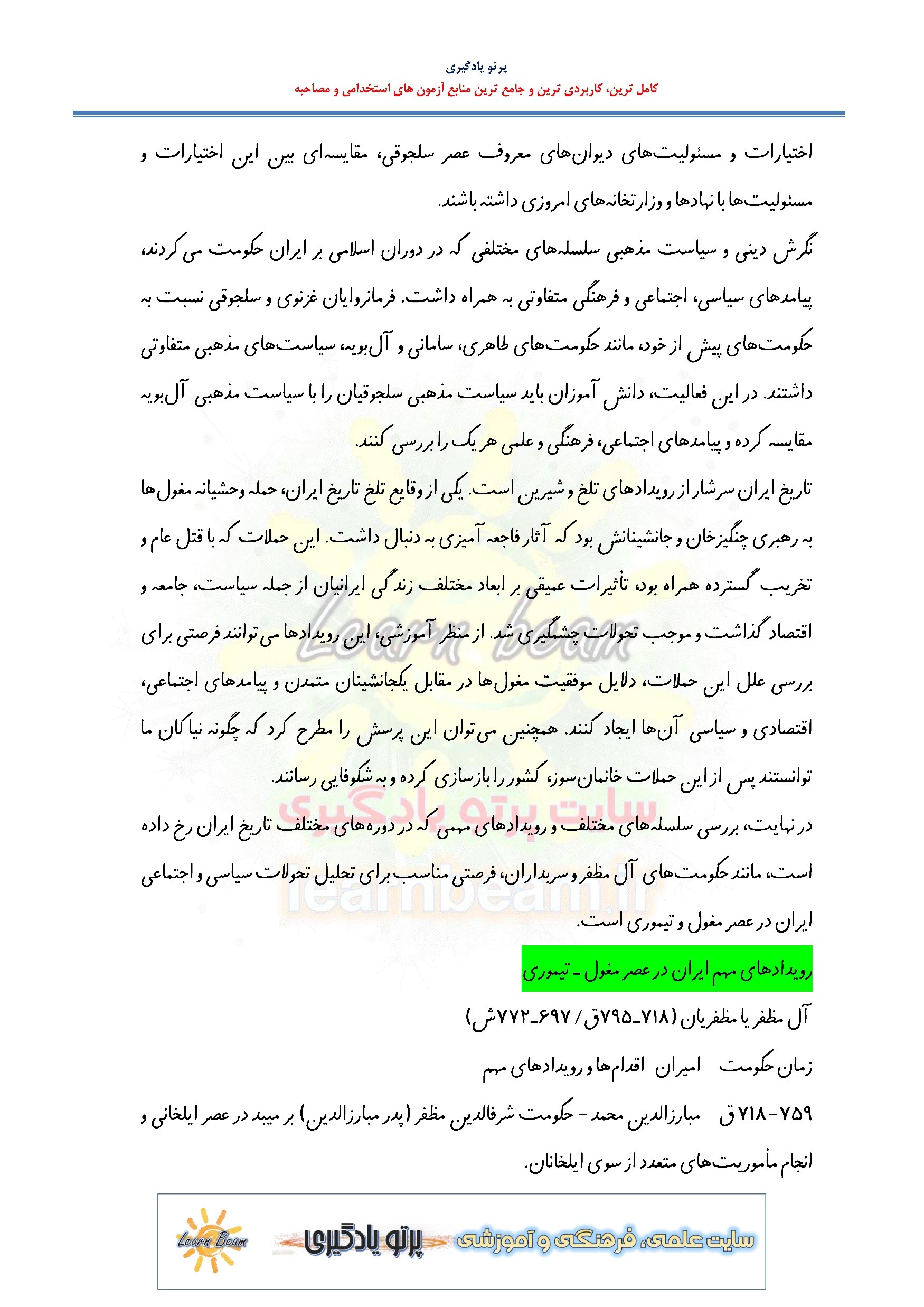 جزوه خلاصه راهنمای معلم تاریخ 2 پایه یازدهم متوسطه