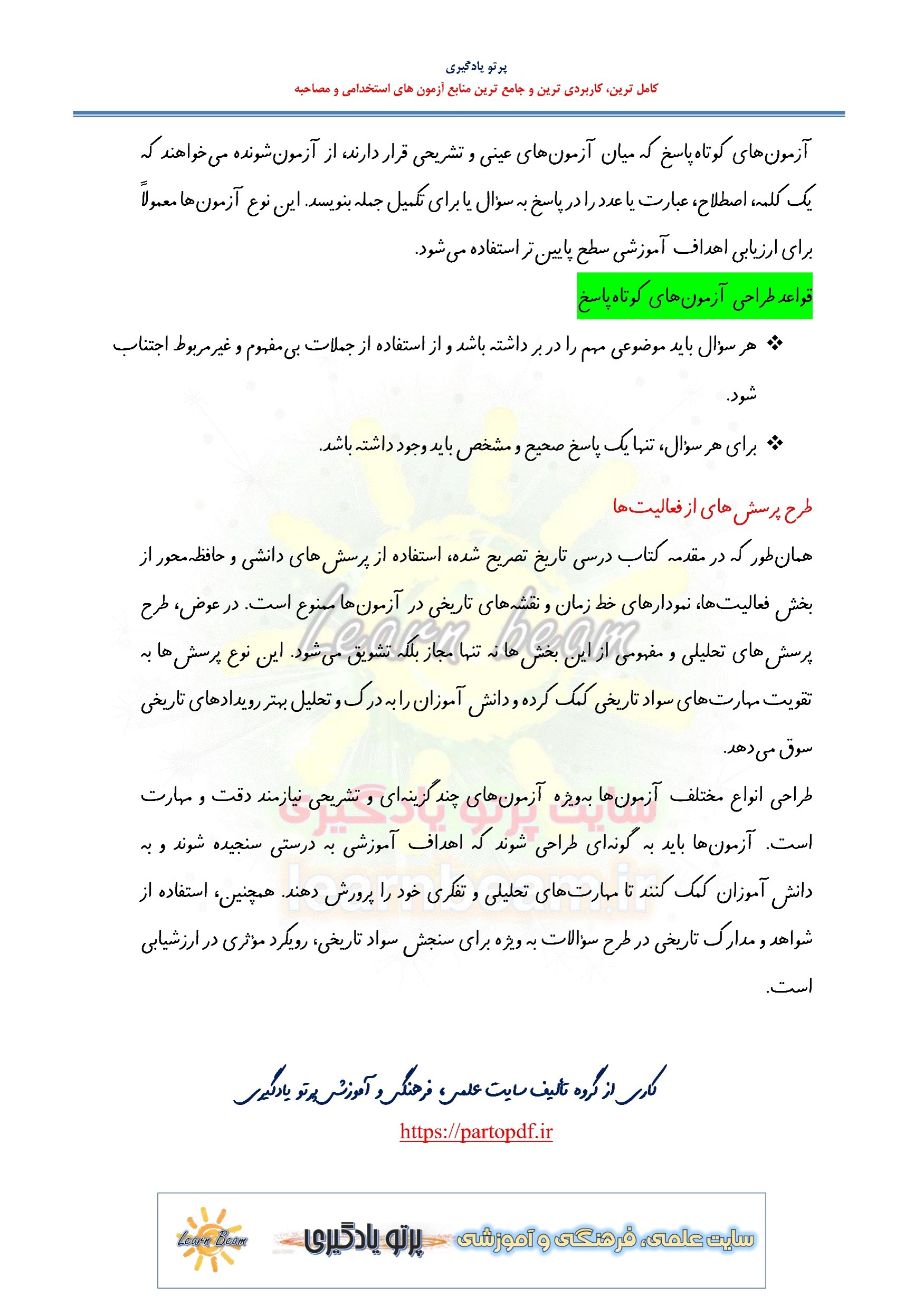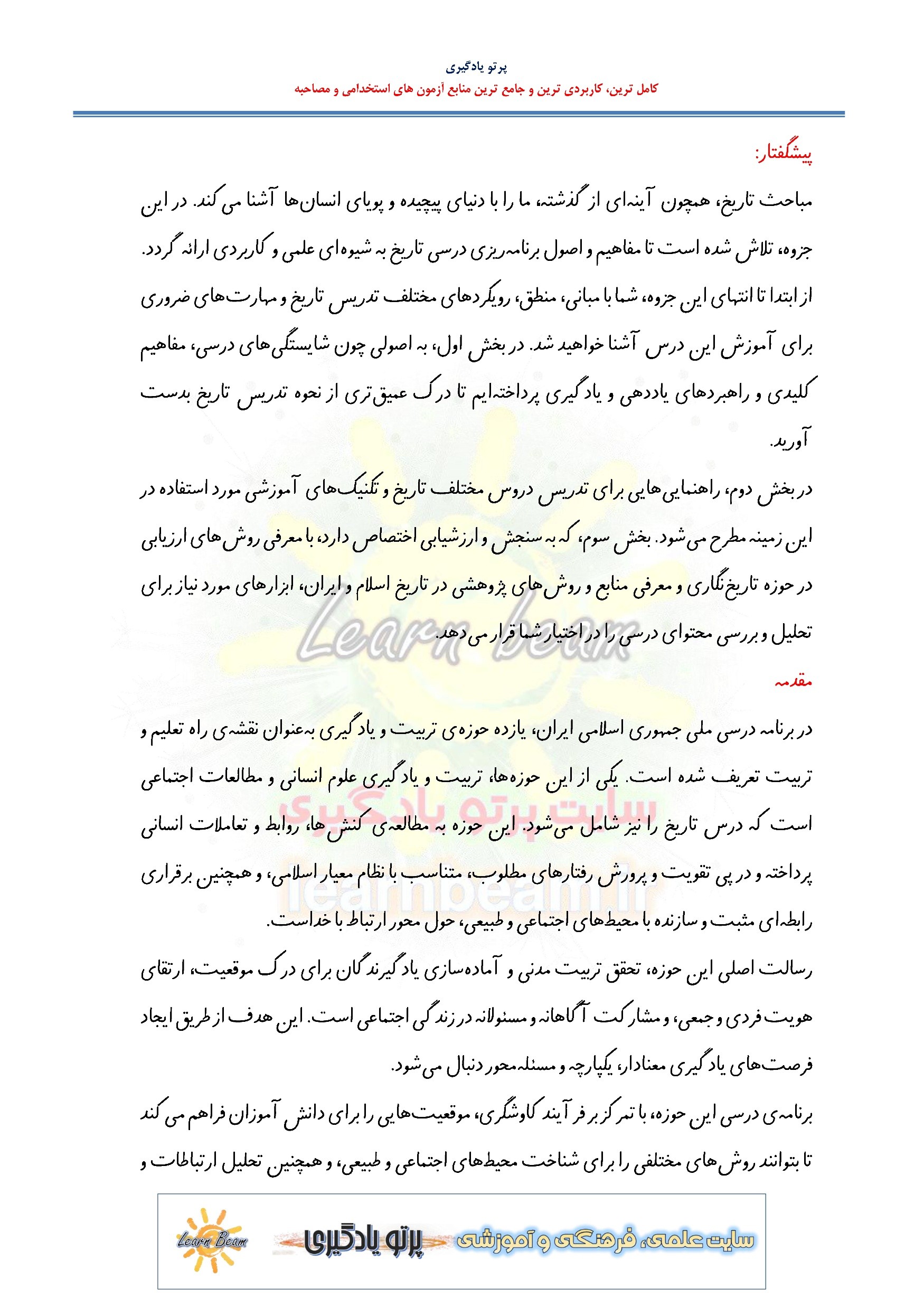 تست کتاب راهنمای معلم تاریخ 2 پایه یازدهم متوسطه