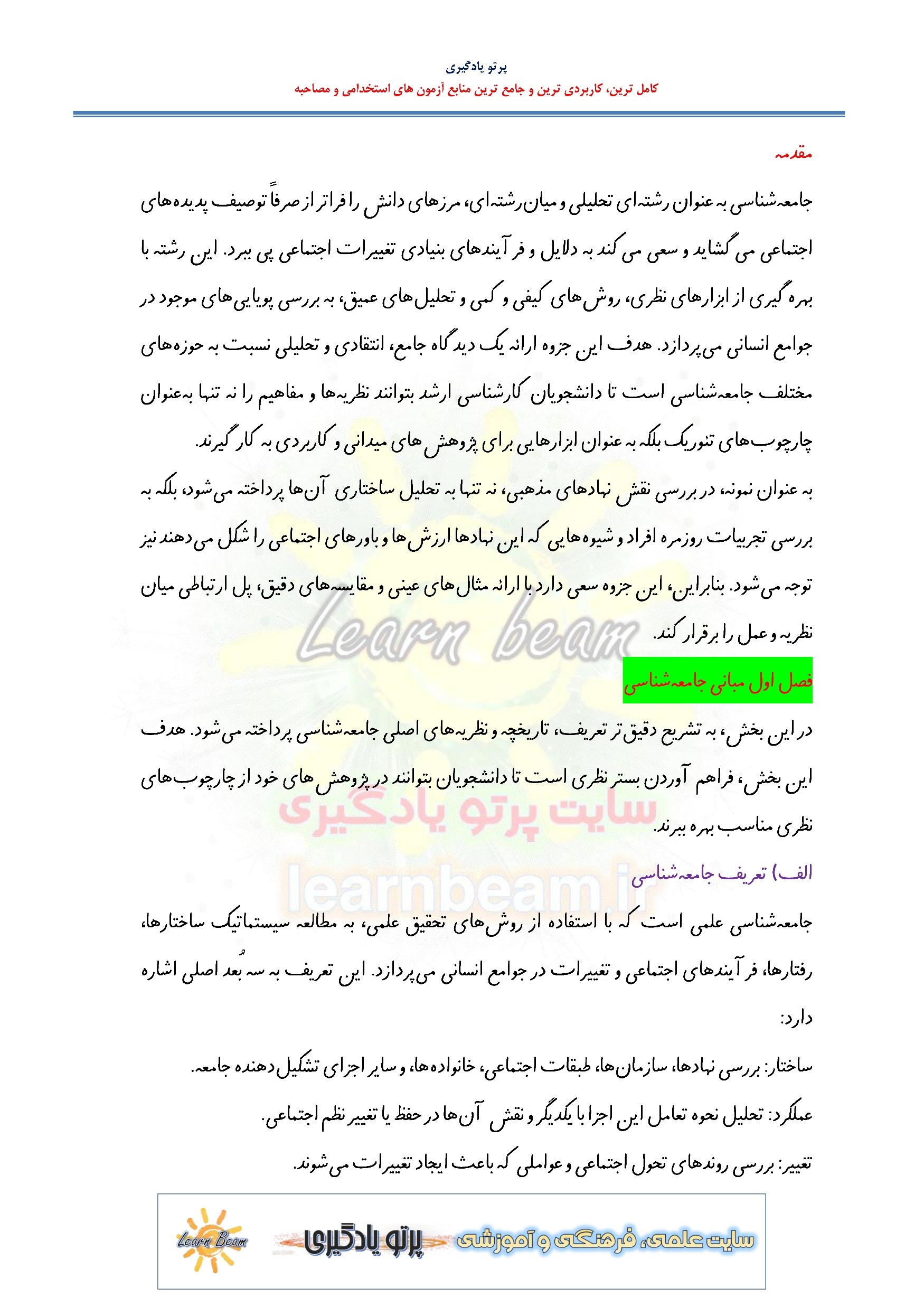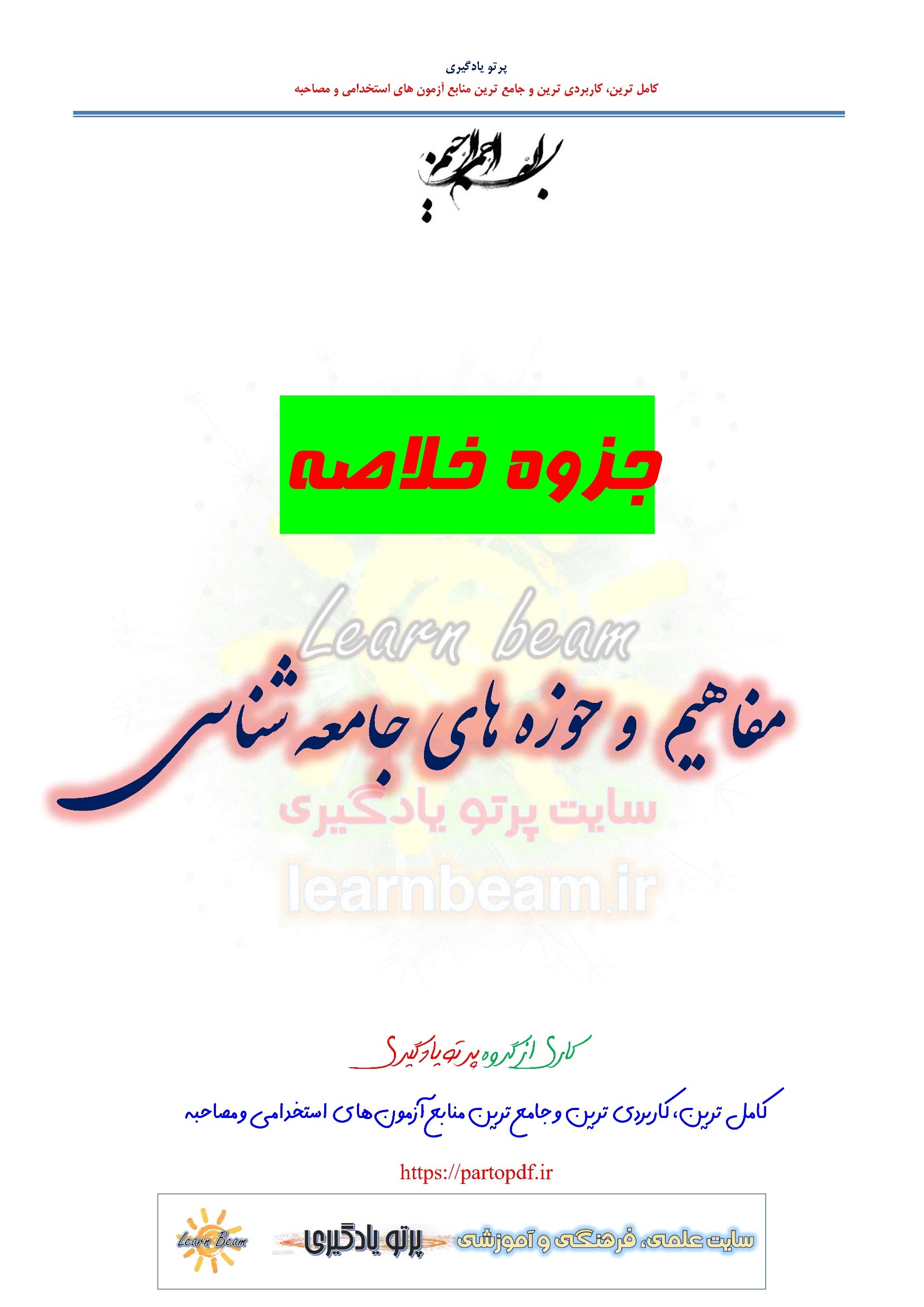 جزوه خلاصه مفاهیم و حوزه های جامعه شناسی در 80 صفحه در قالب pdf. مجموعه ای کامل برای مطالعه و موفقیت در آزمون های استخدامی آموزش و پرورش و سایر آزمون های استخدامی است. این مجموعه ارزشمند در قالب فایل پی دی اف می تواند مناسب ترین انتخاب برای انسجام ذهنی و آمادگی برای آزمون شما عزیزان باشد. مجموعه خلاصه نکات برجسته و کلیدی مفاهیم و حوزه های جامعه شناسی برای تجمیع، جمع بندی و مرور سریع متناسب با سرفصل های اعلامی آزمون استخدامی آموزش و پرورش طراحی و تدوین شده است.