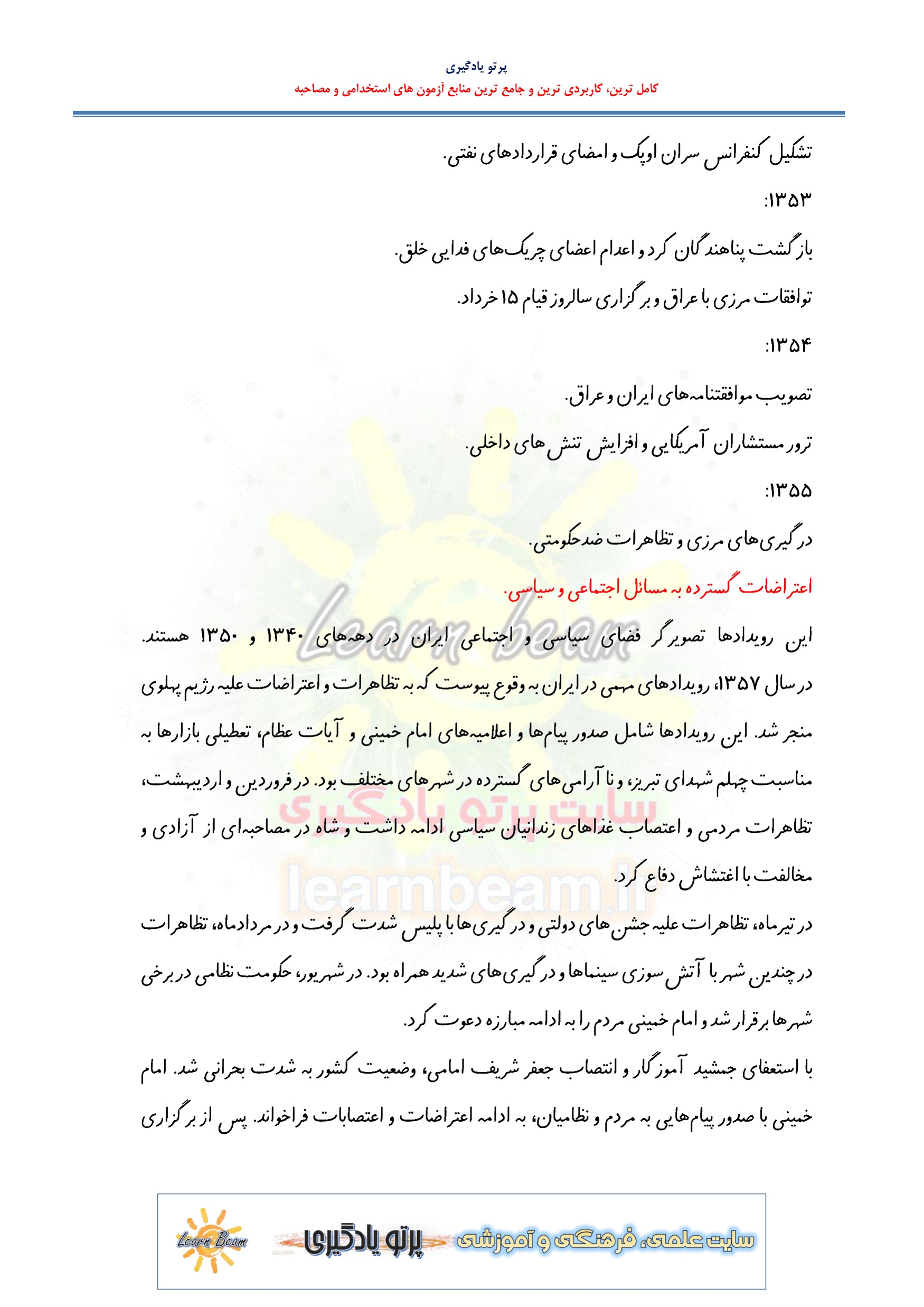 جزوه خلاصه راهنمای معلم تاریخ 3 ایران و جهان معاصر پایه دوازدهم متوسطه